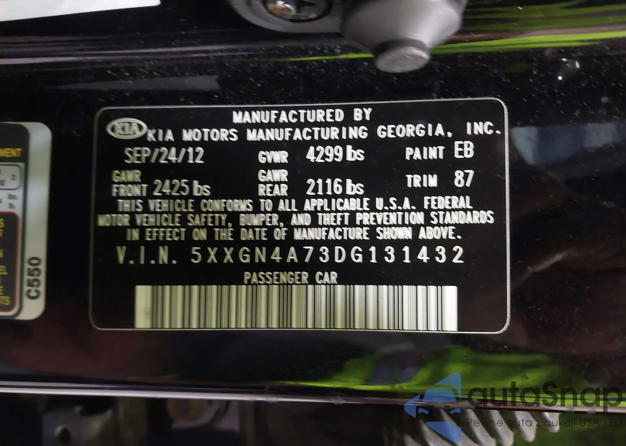 • VIN 5XXGN4A73DG131432