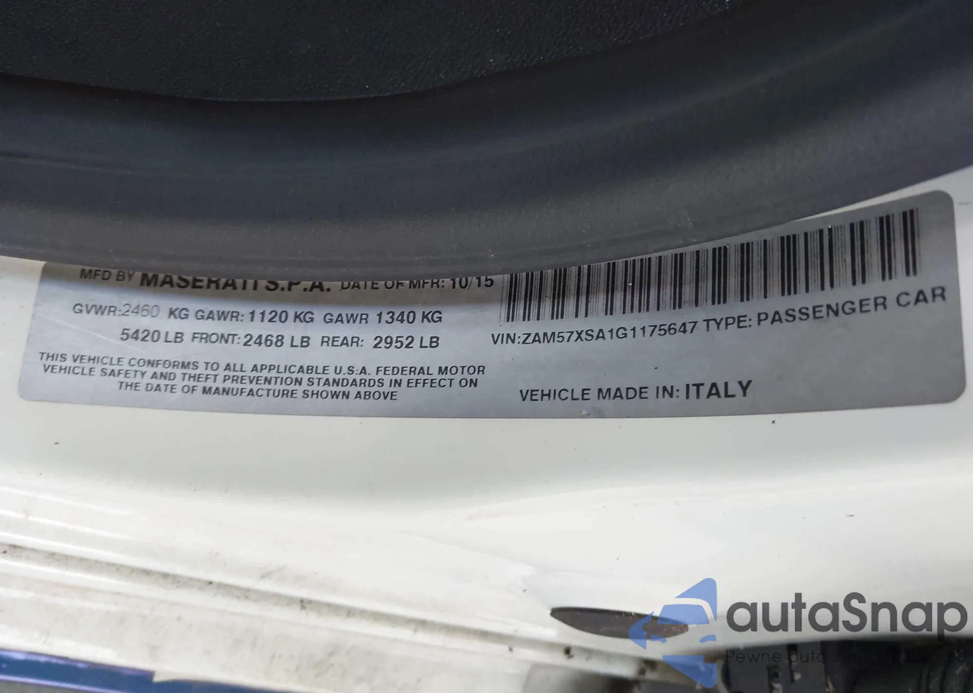 • VIN ZAM57XSA1G1175647