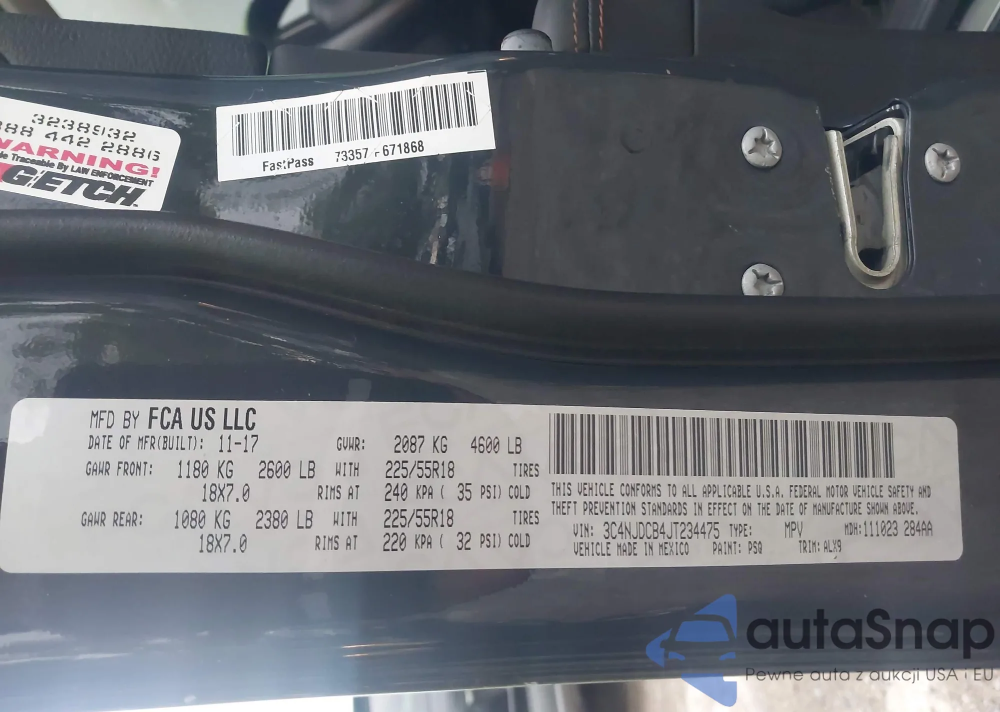 • VIN 3C4NJDCB4JT234475