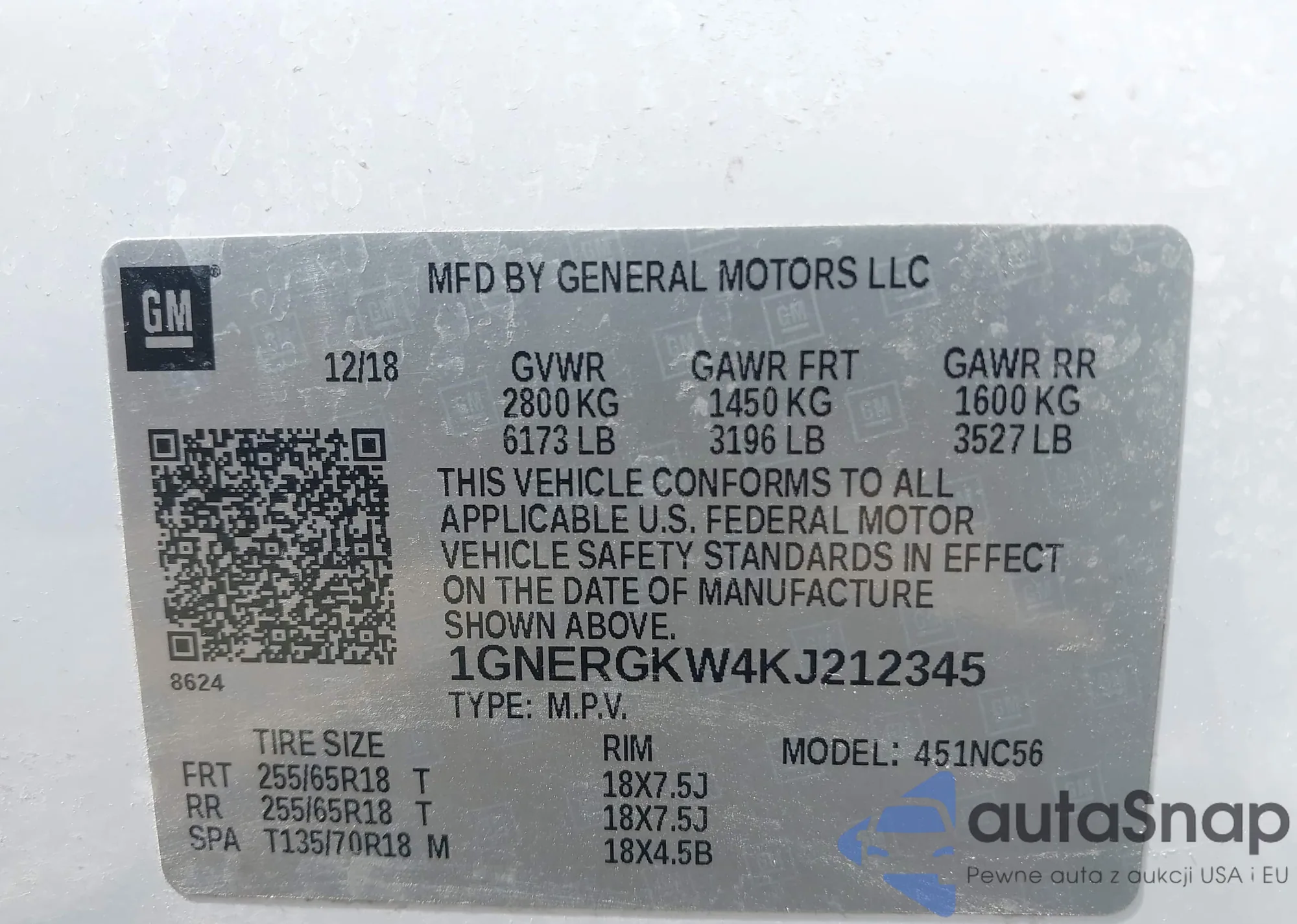 LOT: 43125880 VIN: 1GNERGKW4KJ212345