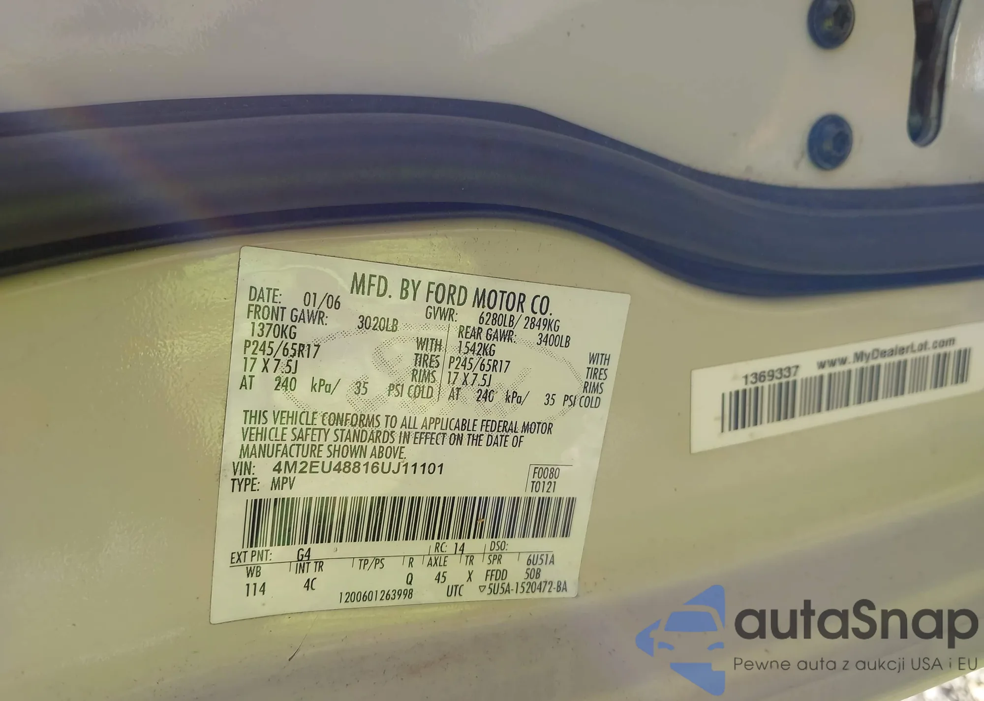 • VIN 4M2EU48816UJ11101