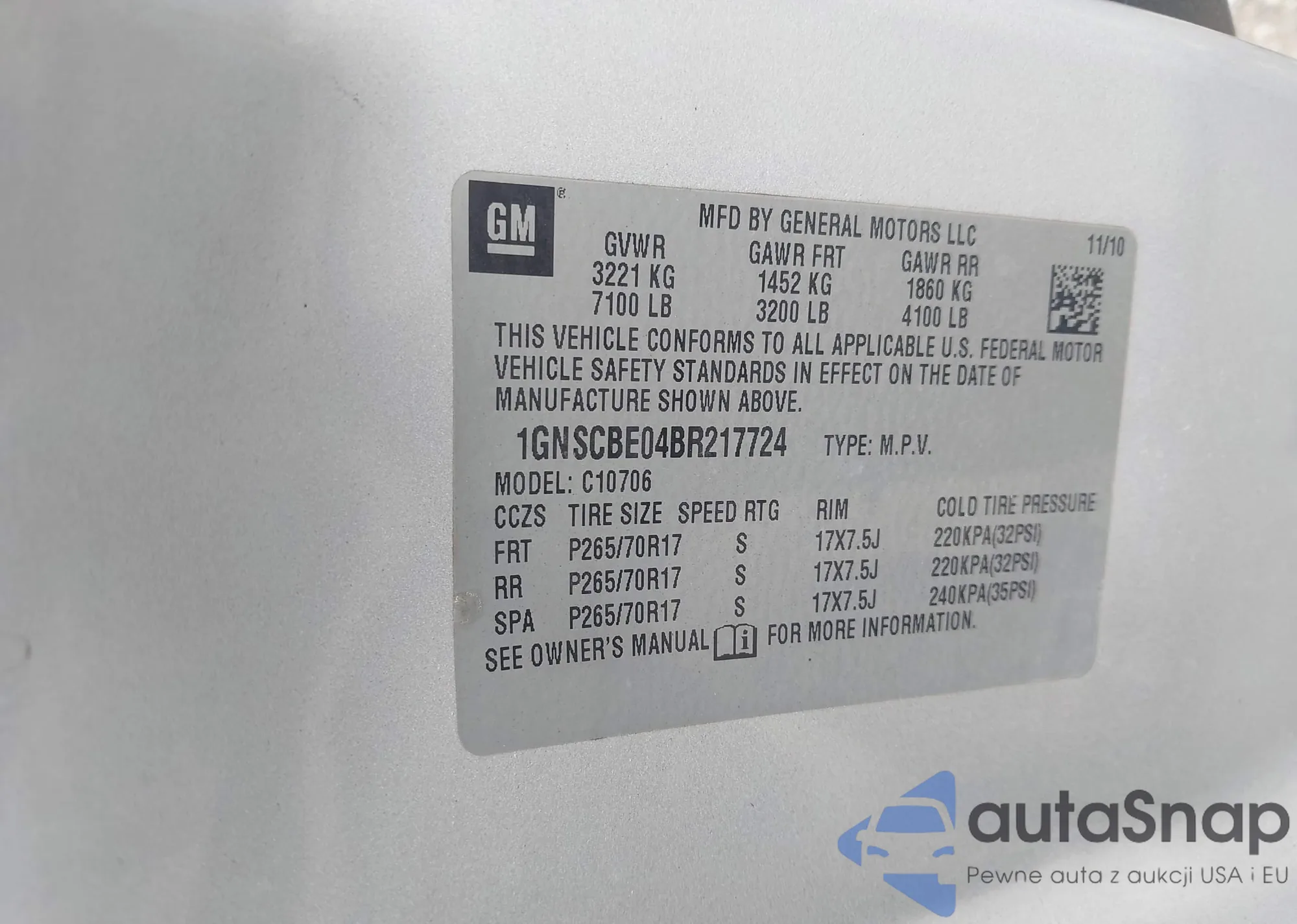 • VIN 1GNSCBE04BR217724