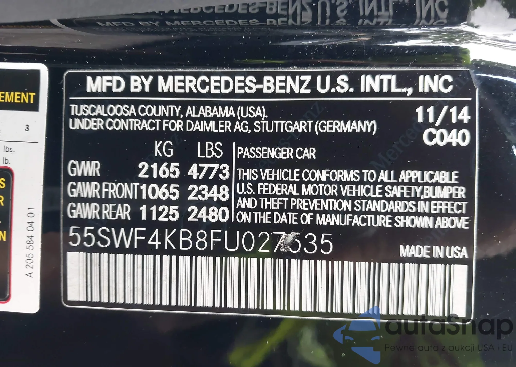 • VIN 55SWF4KB8FU027535