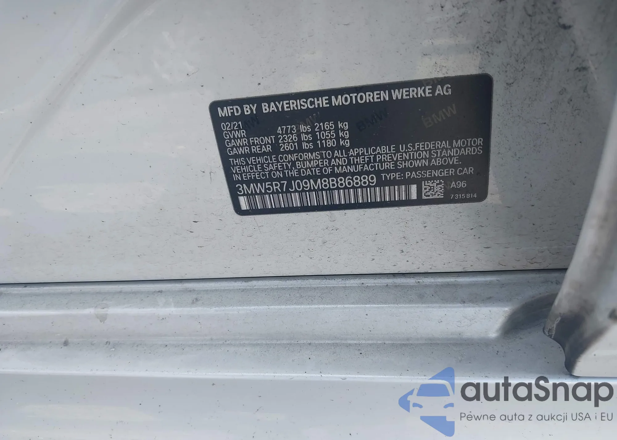• VIN 3MW5R7J09M8B86889
