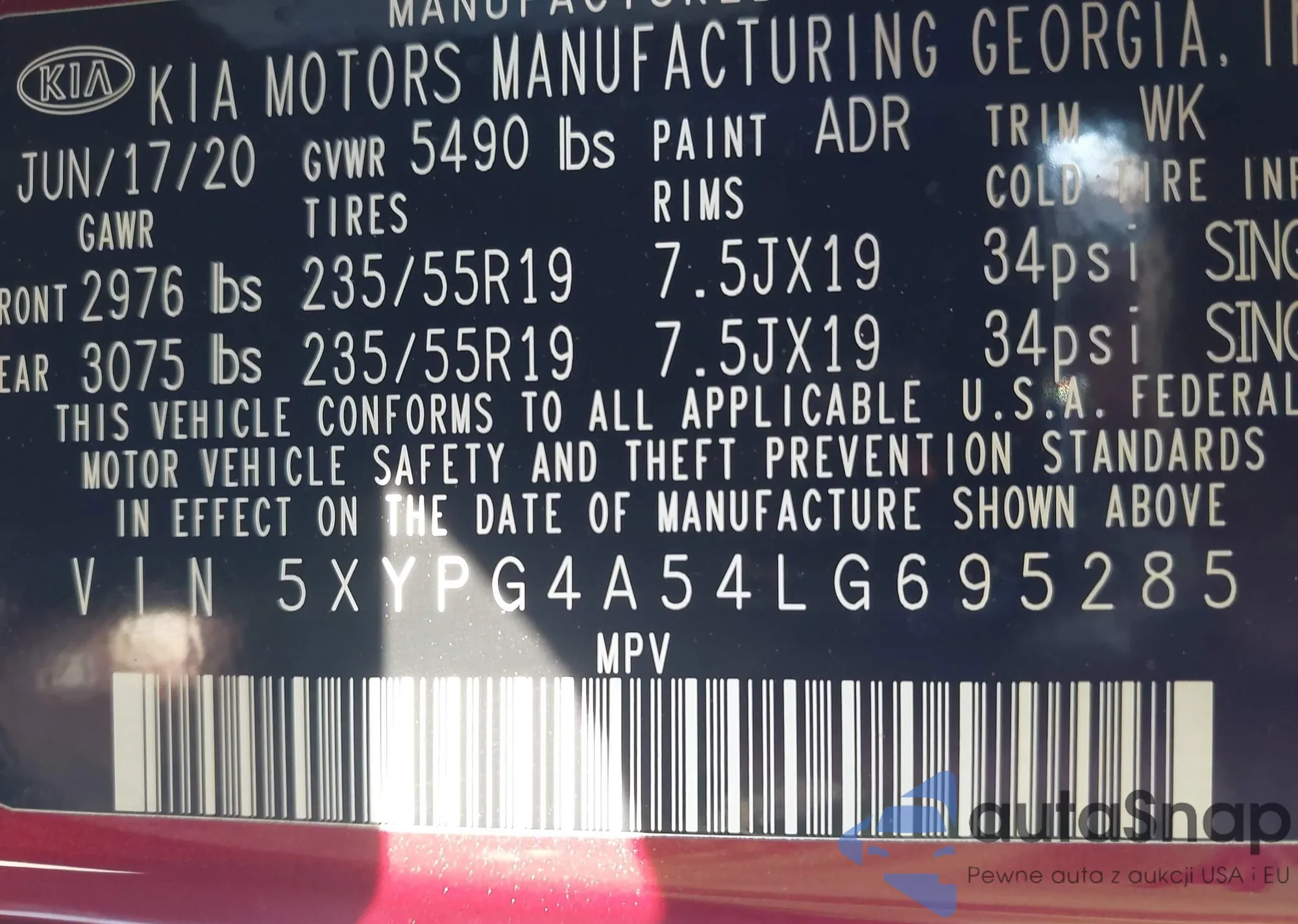 • VIN 5XYPG4A54LG695285
