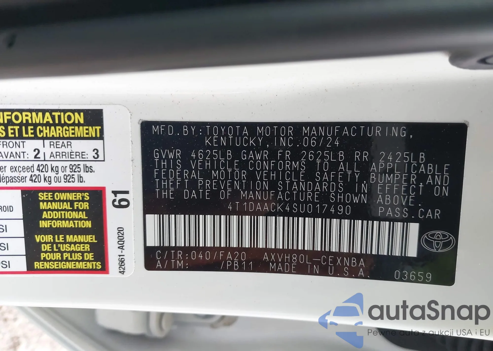 • VIN 4T1DAACK4SU017490
