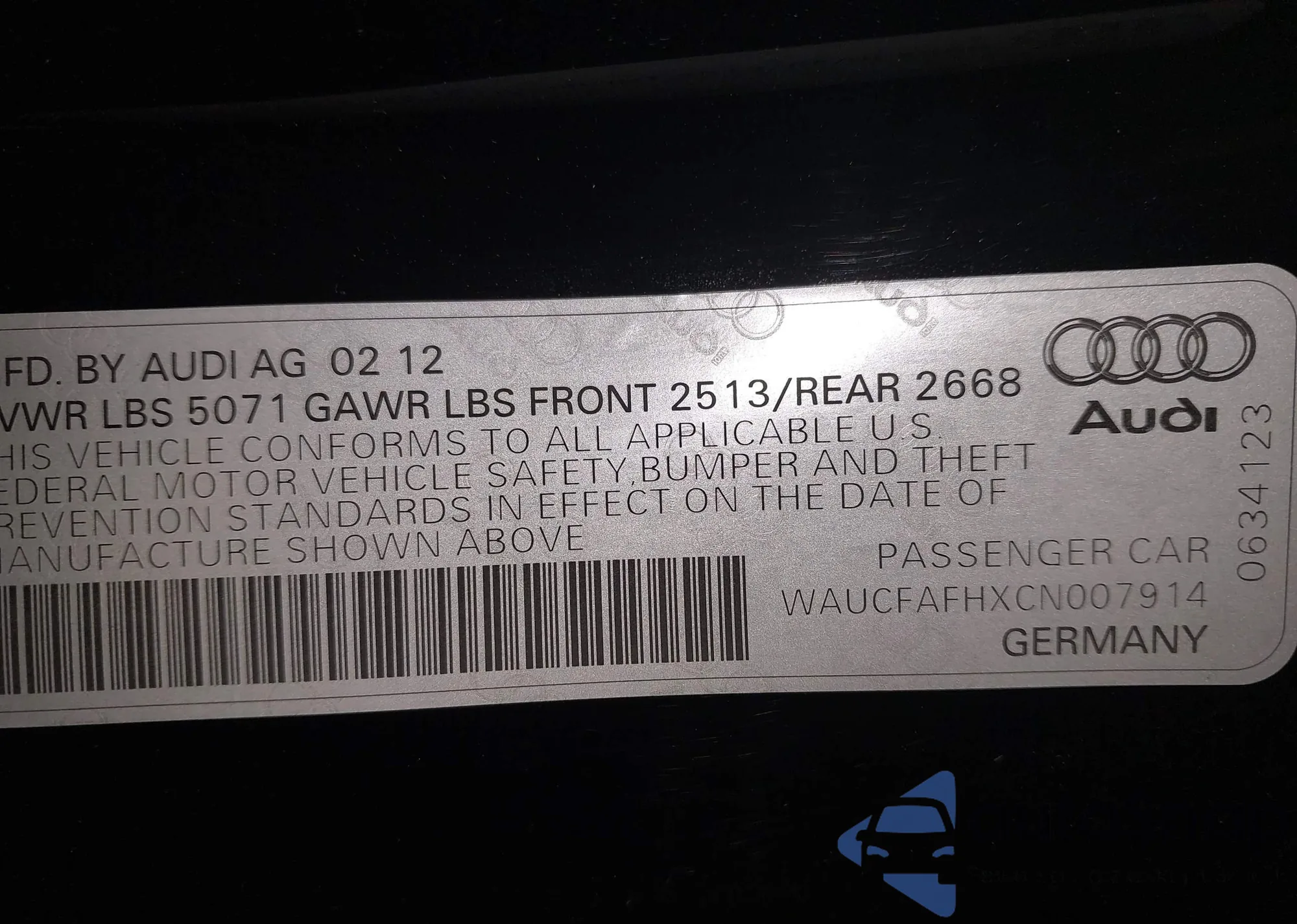 • VIN WAUCFAFHXCN007914
