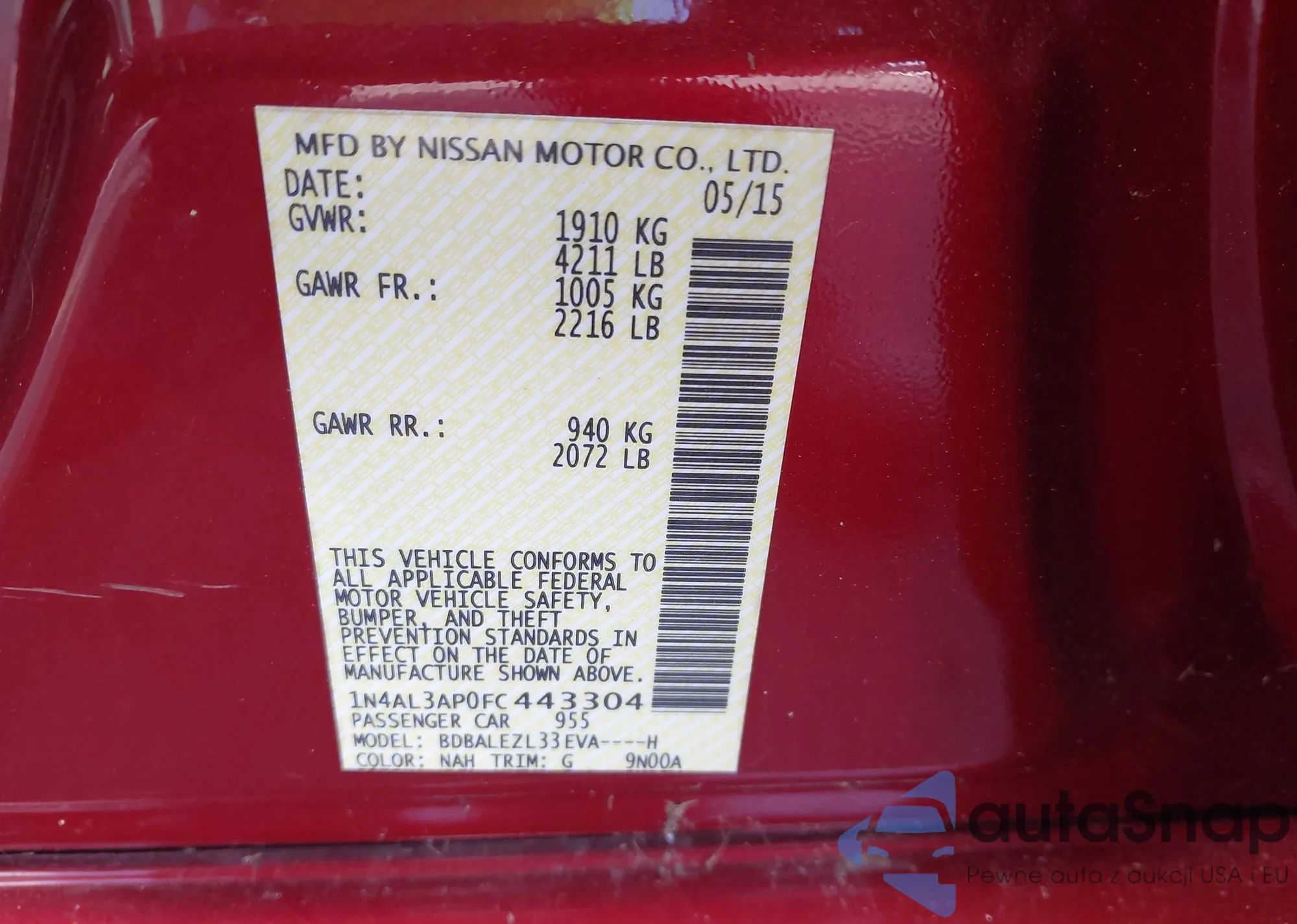 LOT: 43159322 VIN: 1N4AL3AP0FC443304