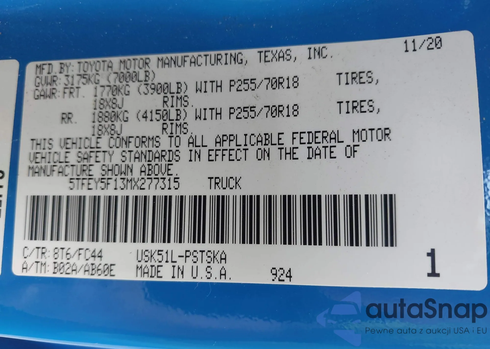 • VIN 1FDYR5ZM1JKA99604