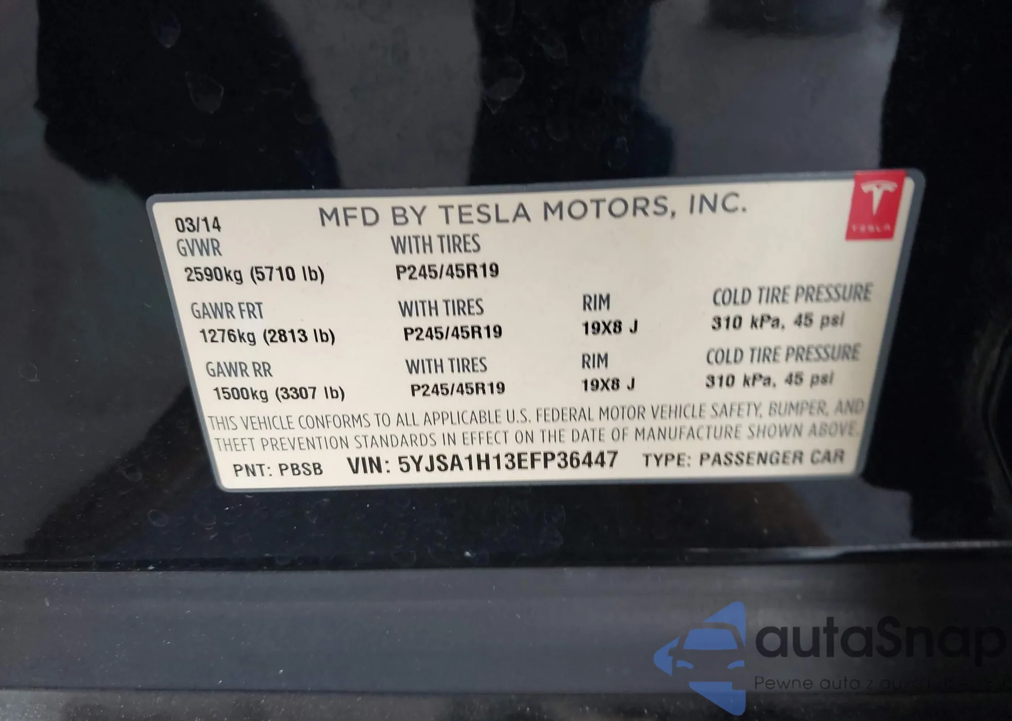 • VIN 5YJSA1H13EFP36447