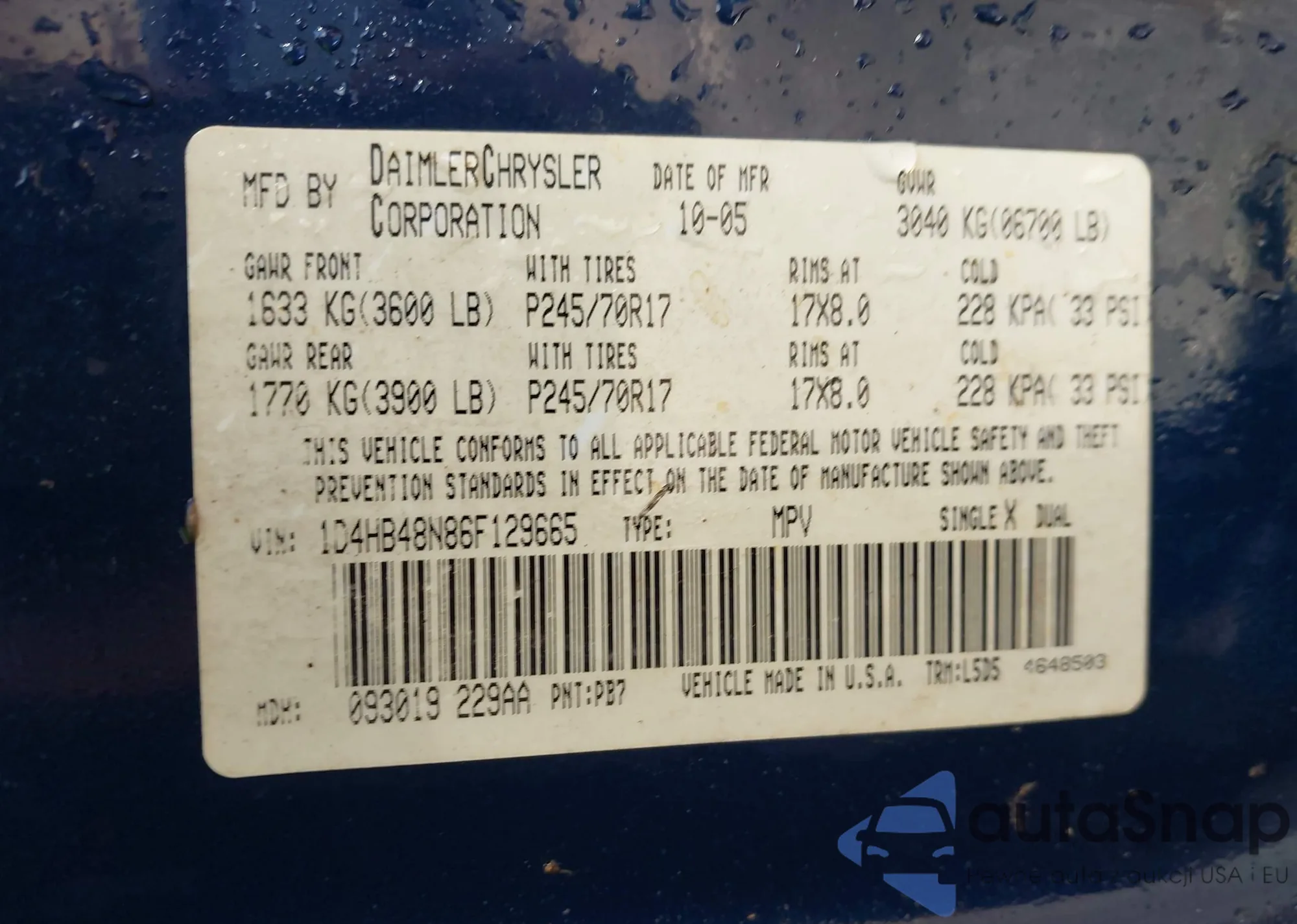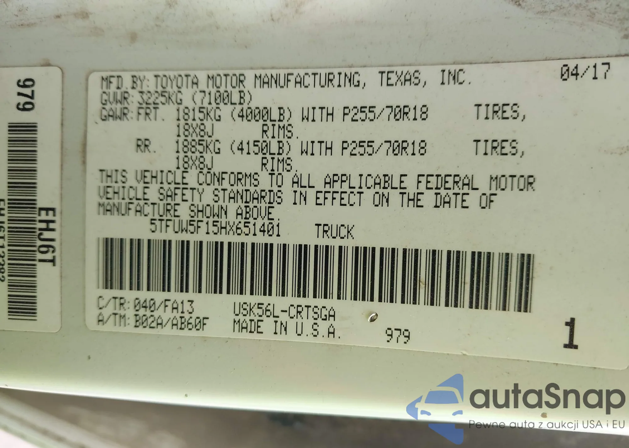 LOT: 43271241 VIN: 5TFUW5F15HX651401