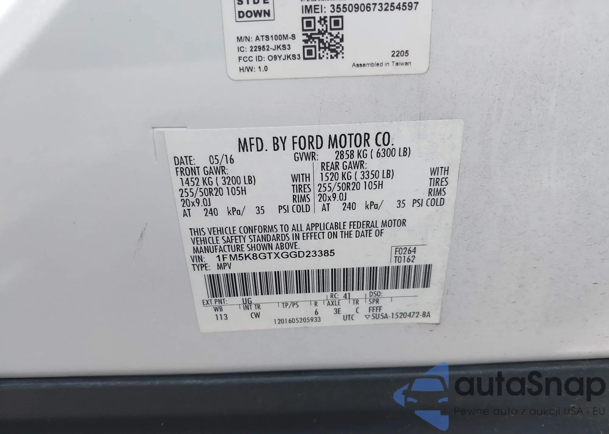LOT: 43129268 VIN: KNMAT2MV9GP602118