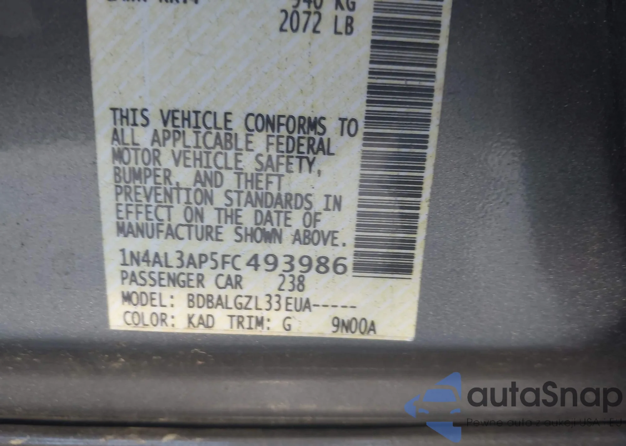 • VIN 1N4AL3AP5FC493986