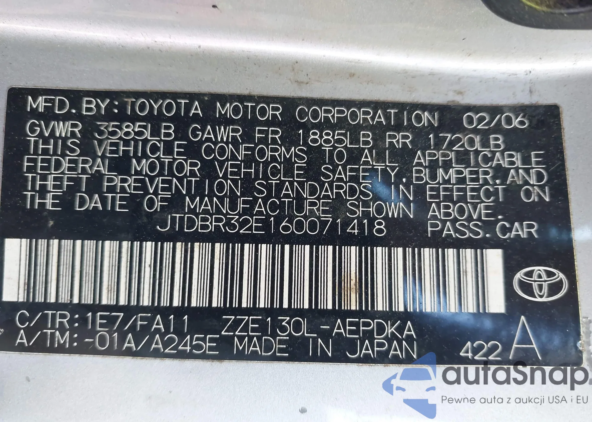 LOT: 43344124 VIN: JTDBR32E160071418