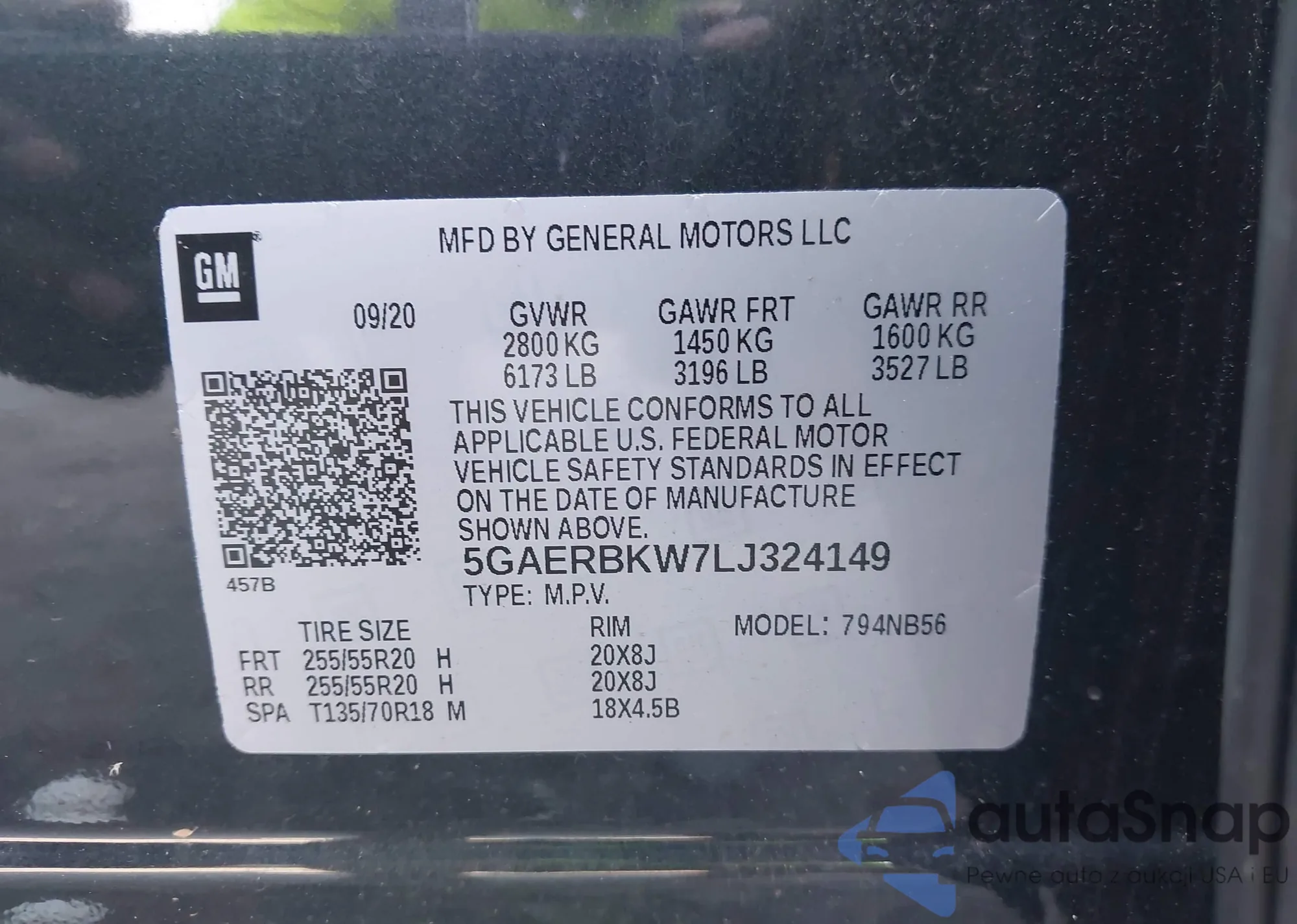 • VIN 5GAERBKW7LJ324149