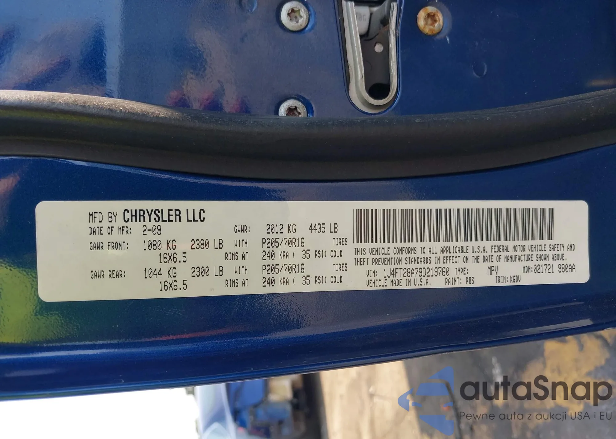 LOT: 43015184 VIN: 1J4FT28A79D219760