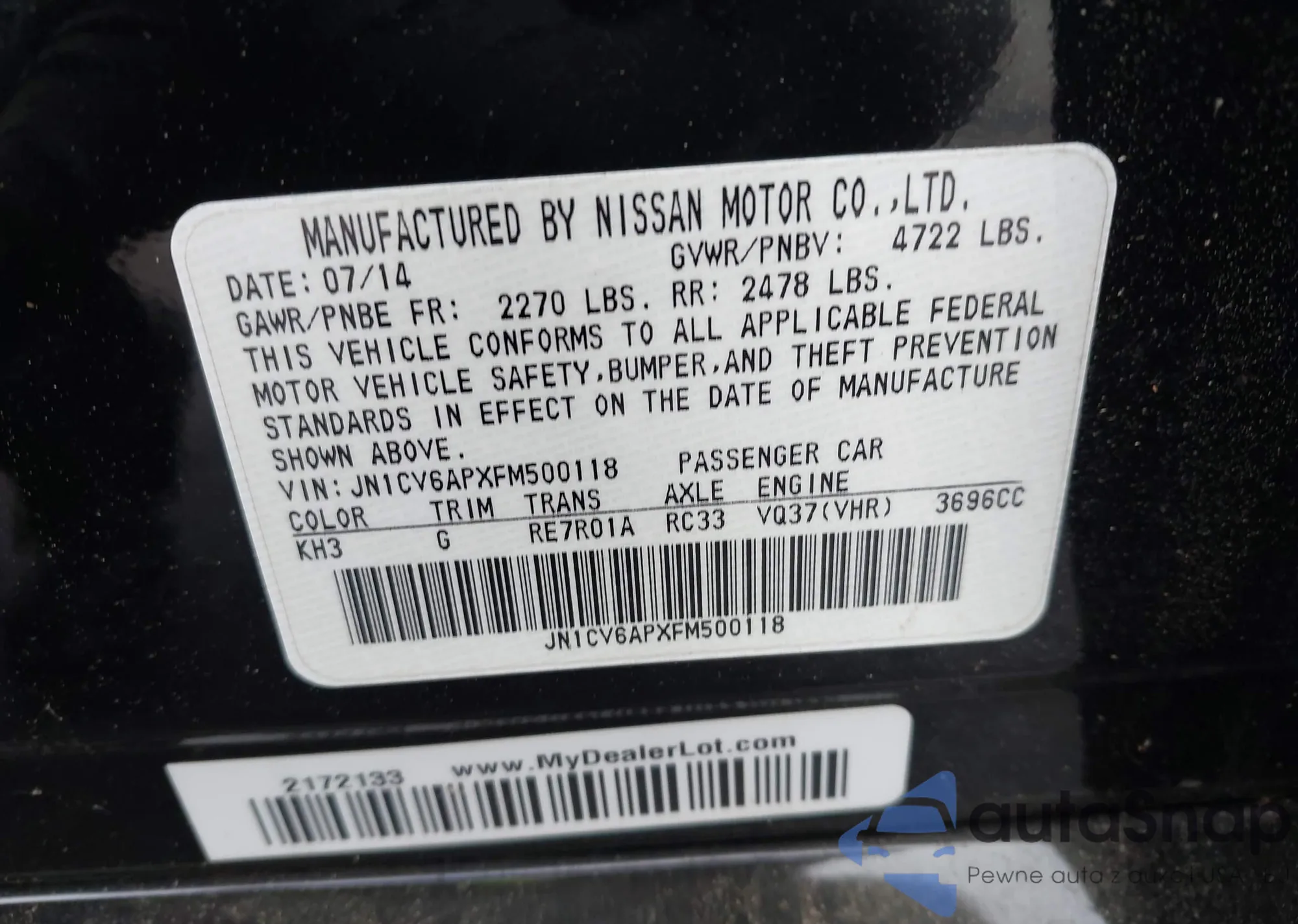 LOT: 43331461 VIN: 3N1CN7AP4JL825033