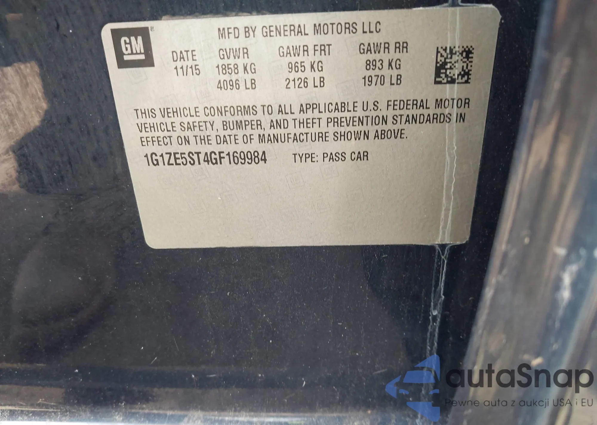 • VIN 1G1ZE5ST4GF169984