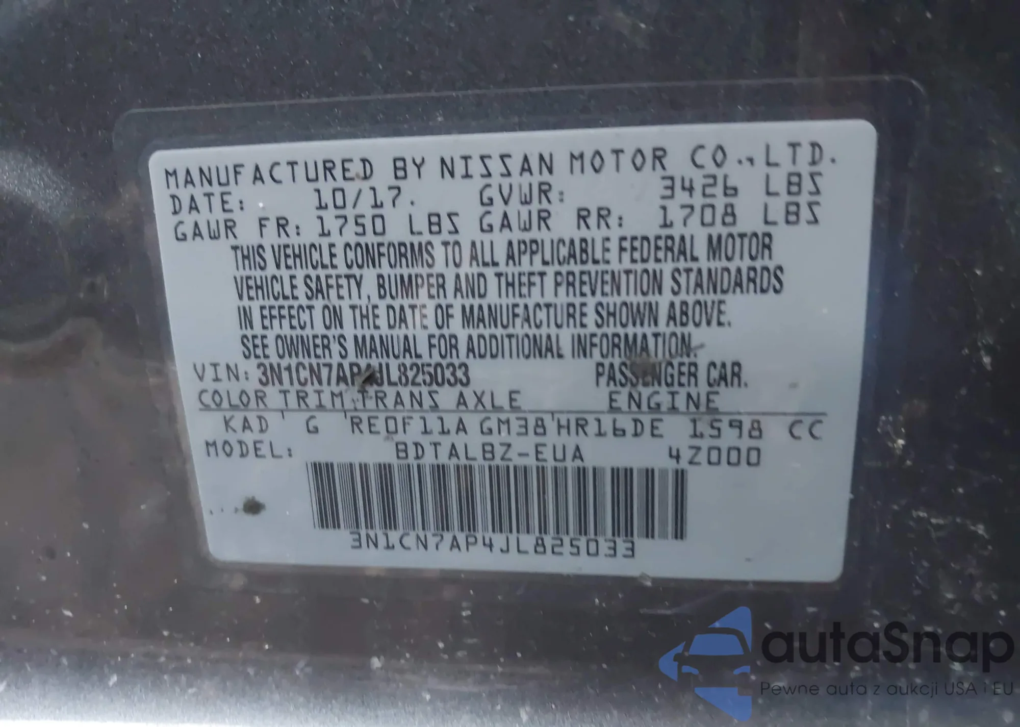 • VIN 3N1CN7AP4JL825033