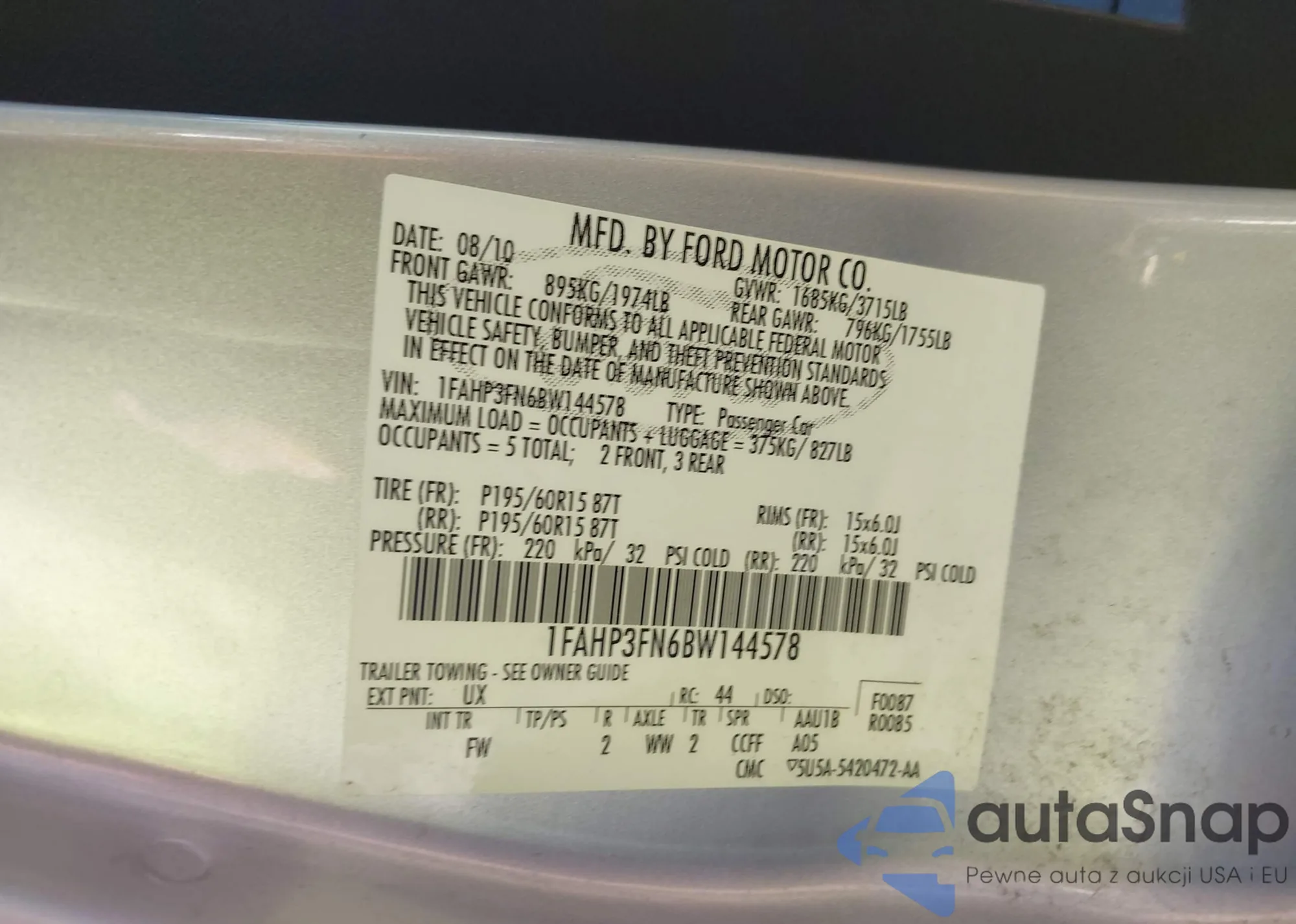 • VIN 1FAHP3FN6BW144578