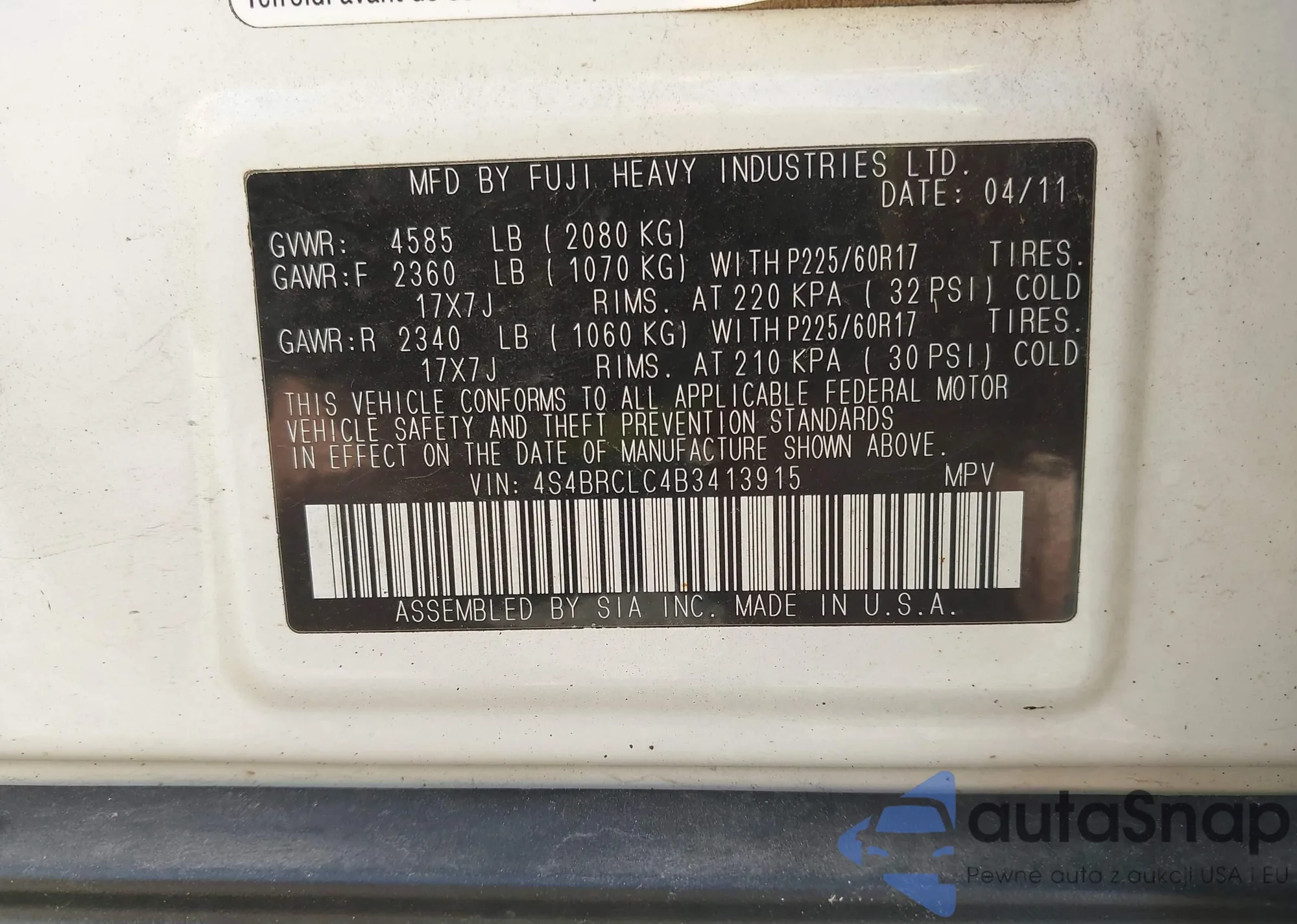 • VIN 4S4BRCLC4B3413915