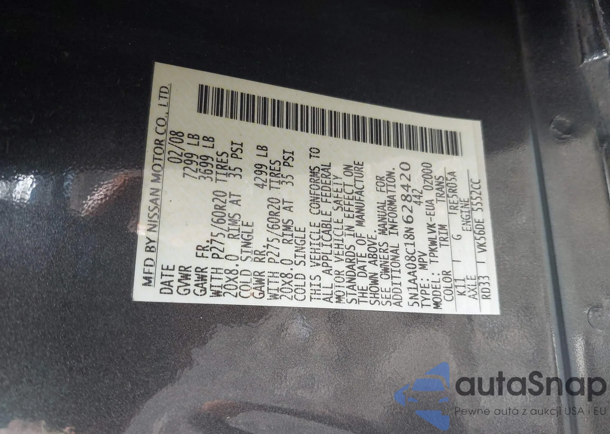 • VIN 5N1AA08C18N628420