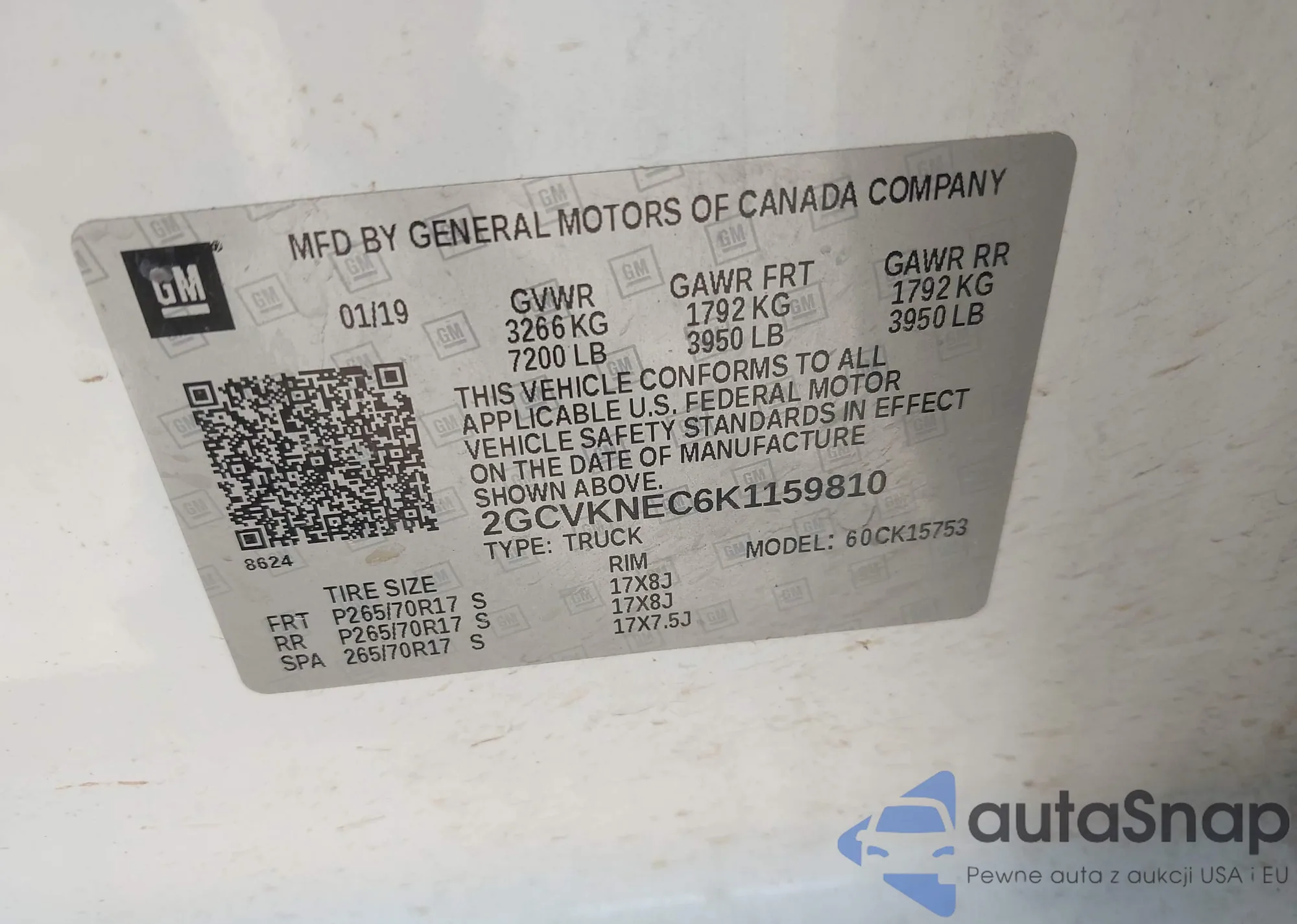 LOT: 43294583 VIN: 3GCPWBEK1LG307695