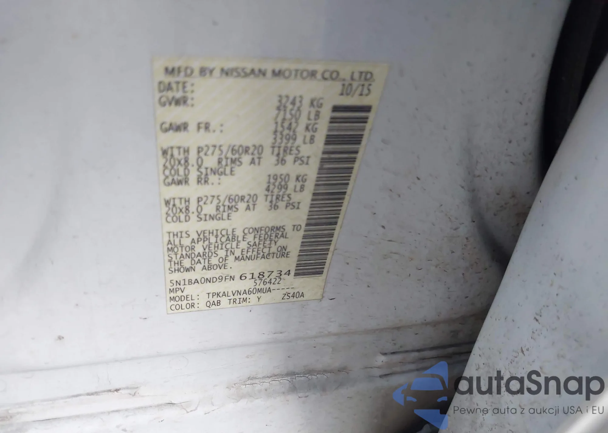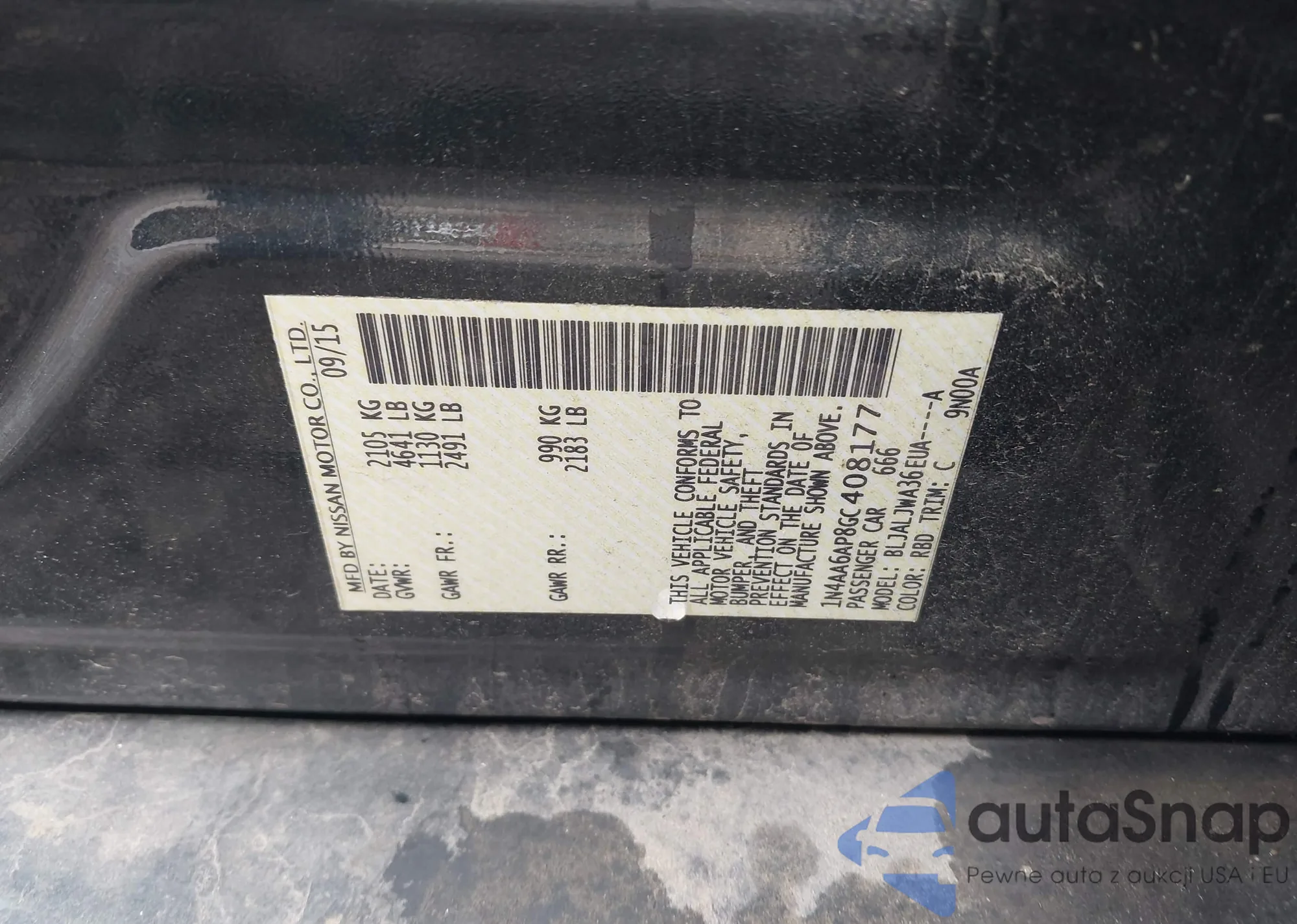 LOT: 43349507 VIN: 1N4AL3AP4FN865984