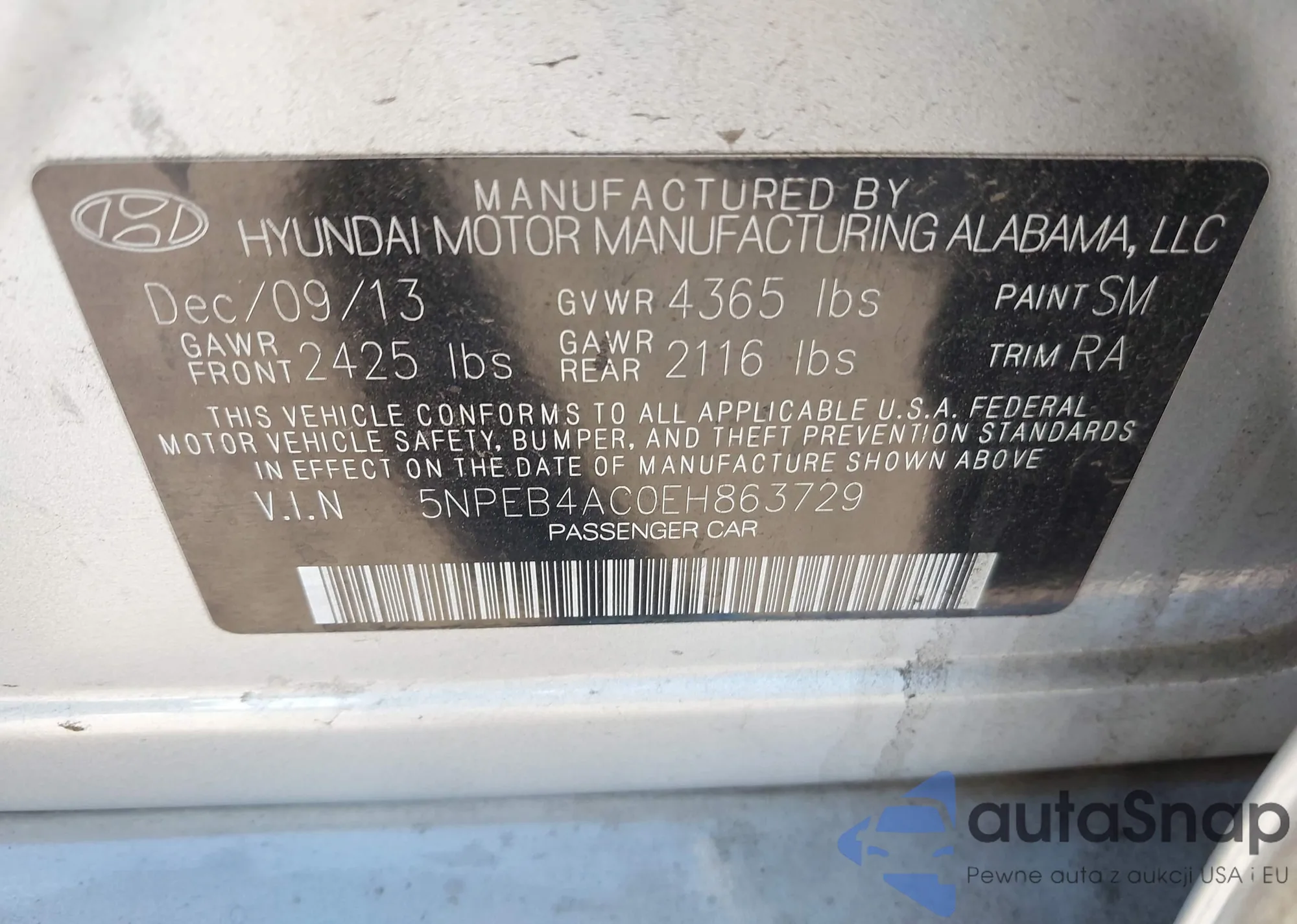 • VIN 5NPEB4AC0EH863729