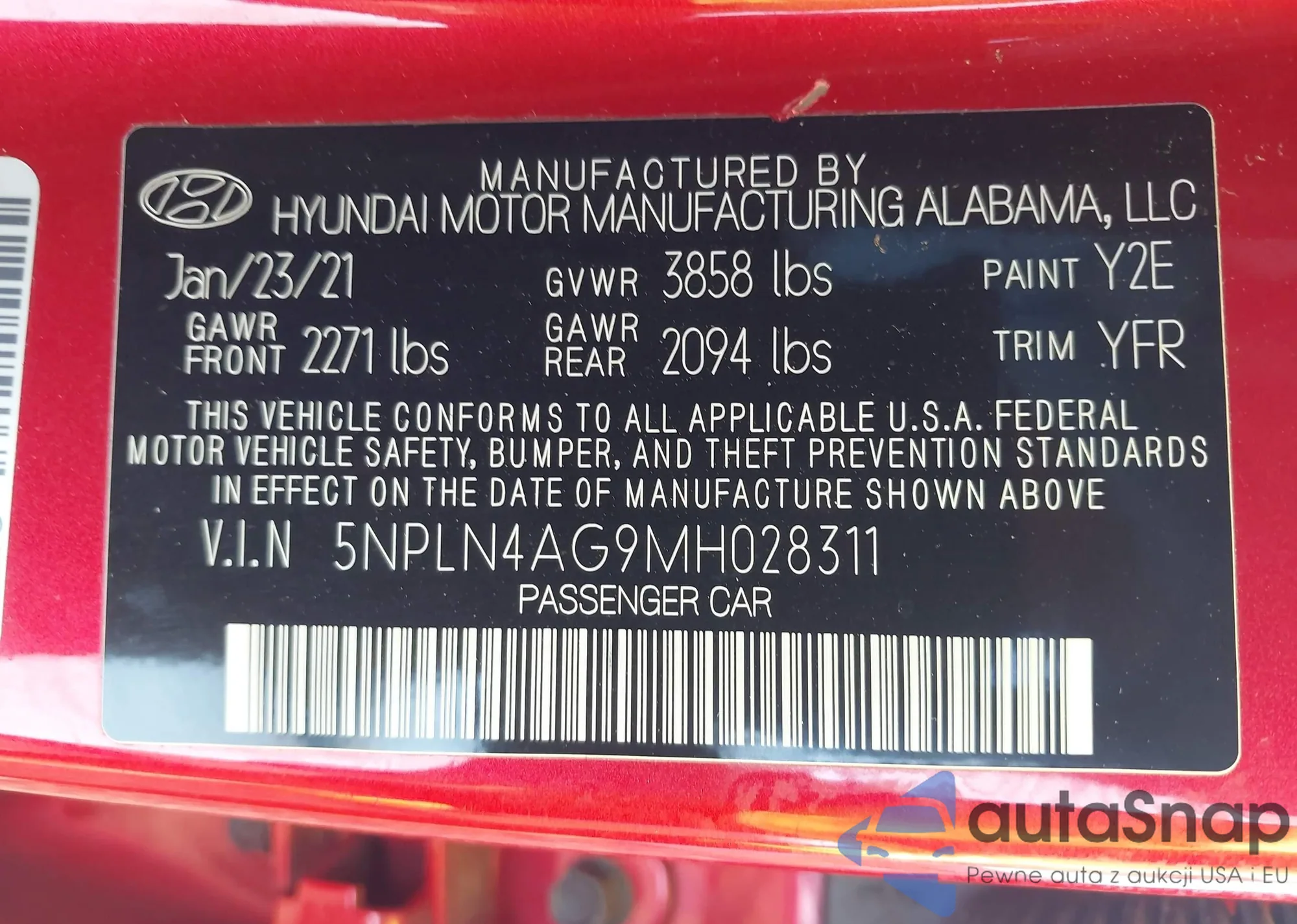 • VIN 5NPE24AF5FH186334