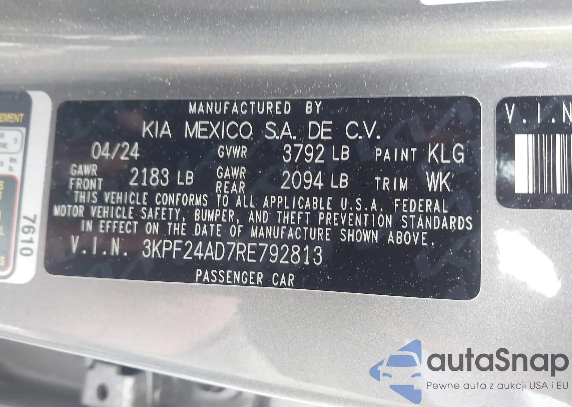 • VIN 3KPF24AD7RE792813