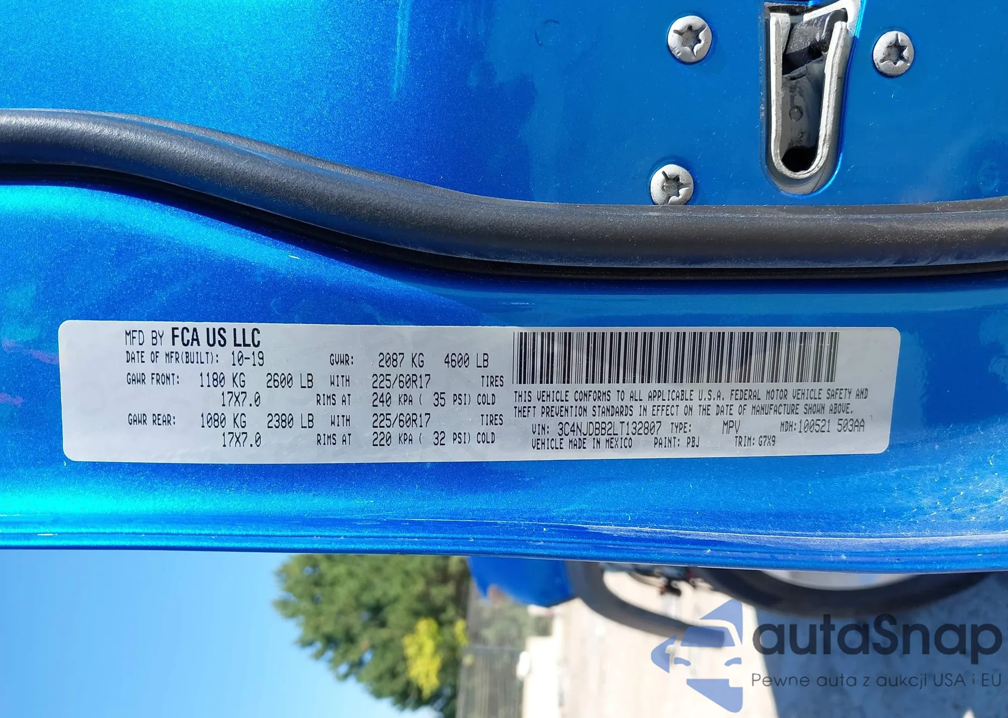 LOT: 43169865 VIN: 3C4NJDBB8KT813911