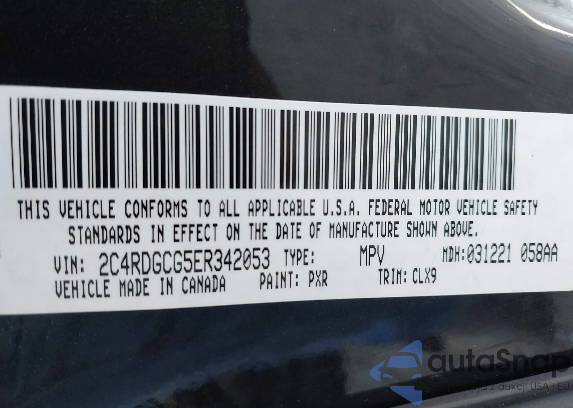 LOT: 43189180 VIN: 2C3CDXBG1MH624903