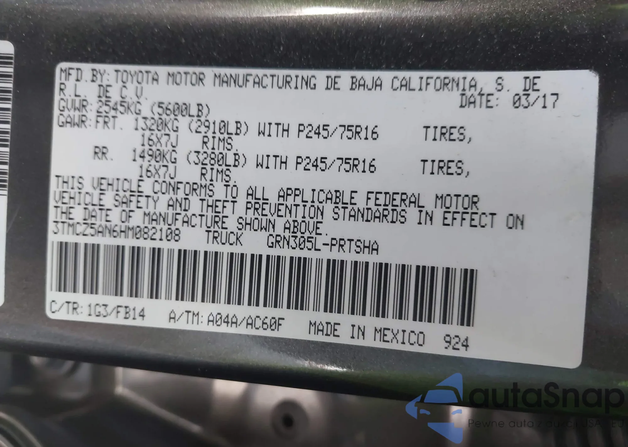 • VIN 3TMCZ5AN6HM082108