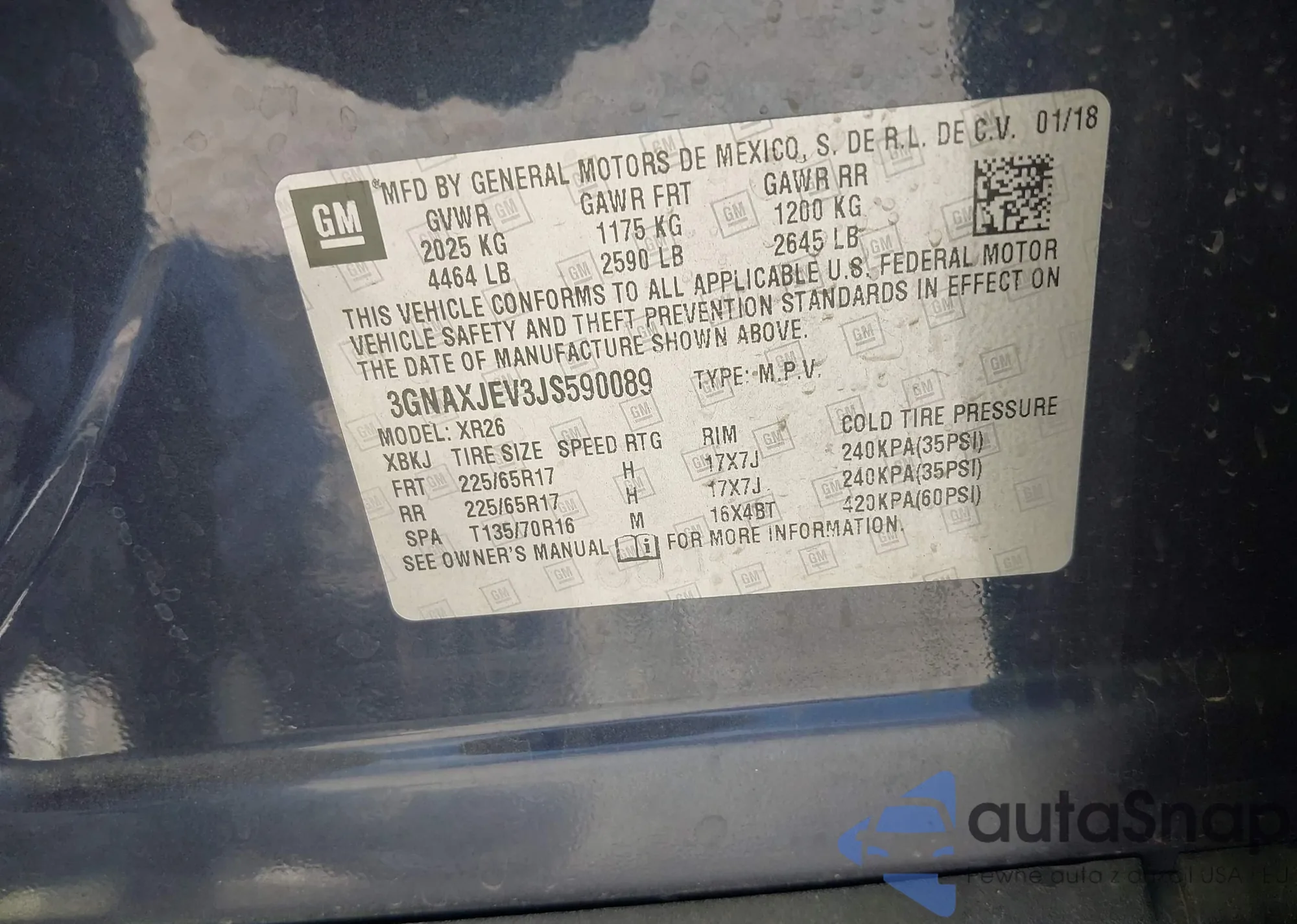 • VIN 3GNAXJEV3JS590089