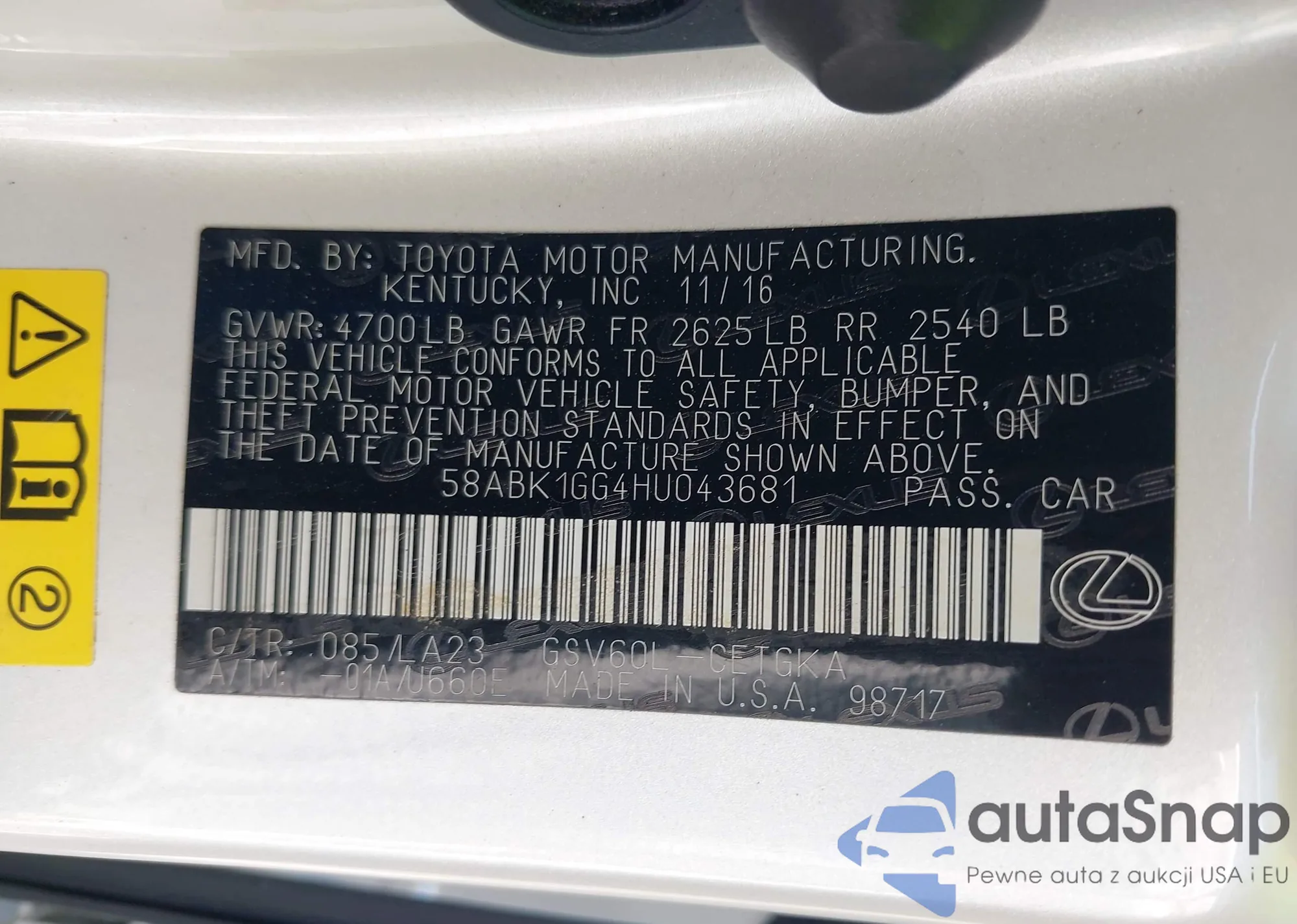 • VIN 58ABK1GG4HU043681