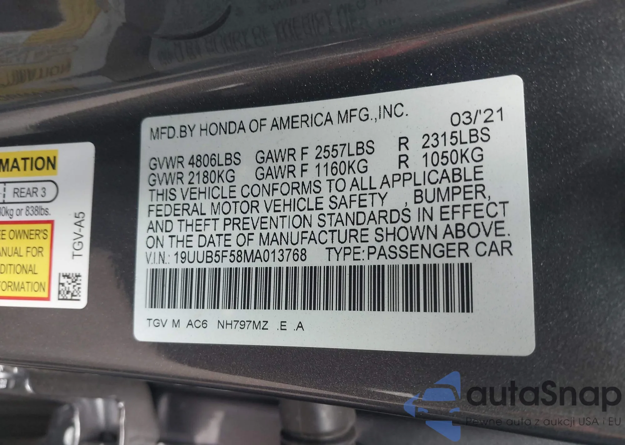 LOT: 43165314 VIN: 19UUB5F58MA013768