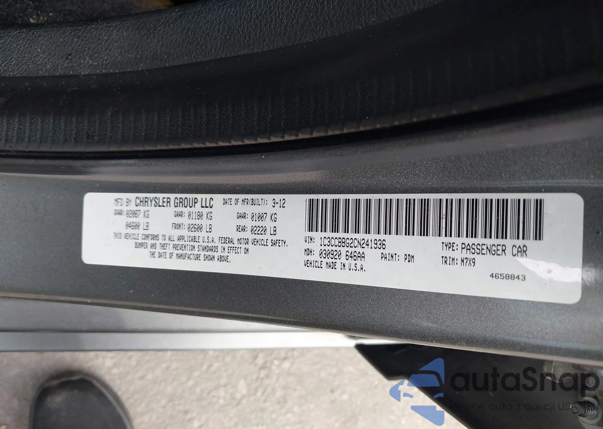 LOT: 43313139 VIN: 1C3CCBBG2CN241936