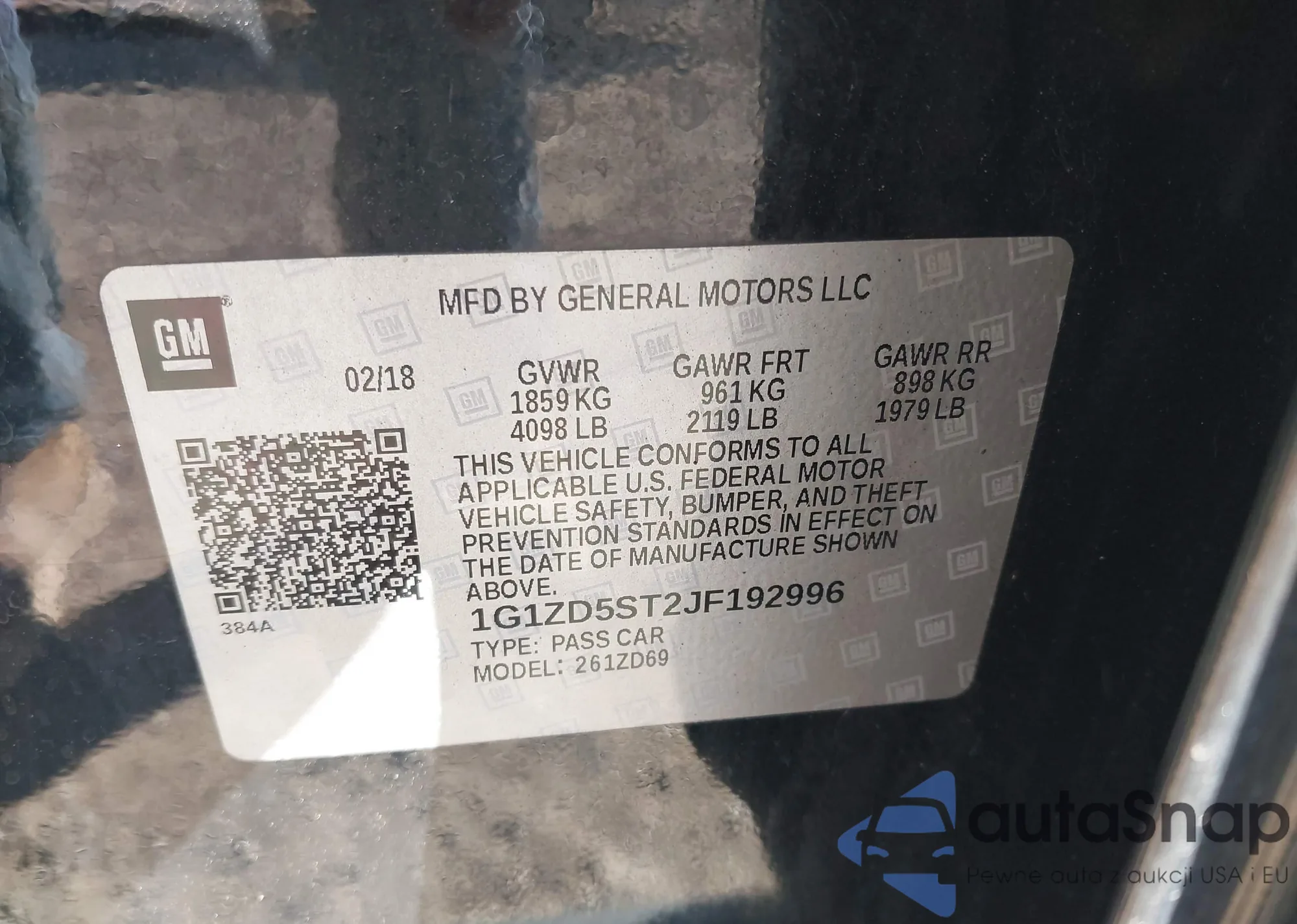 • VIN 1G1ZD5ST2JF192996