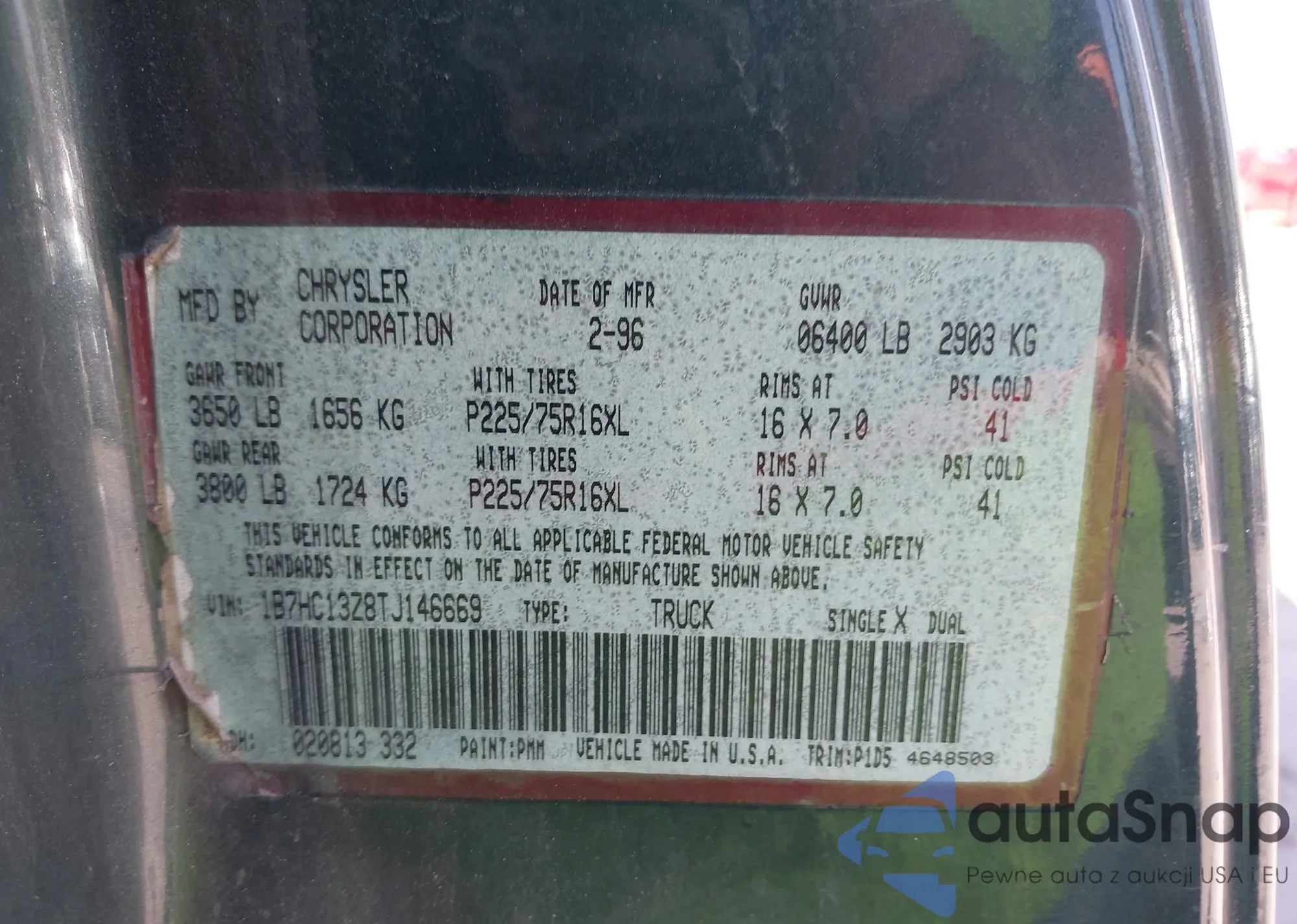 • VIN 1B7HC13Z8TJ146669