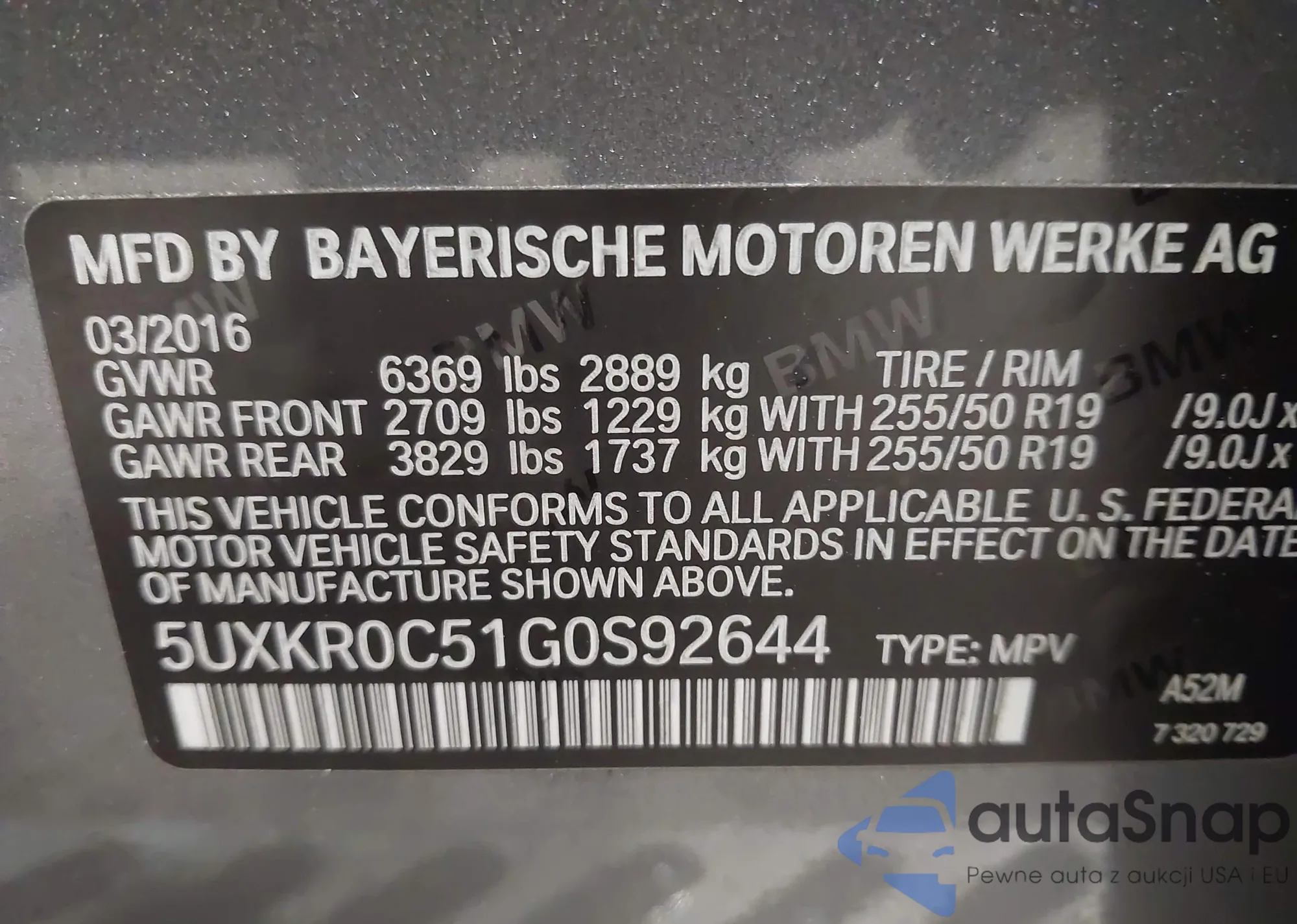 LOT: 43413813 VIN: 5UXKR0C51G0S92644