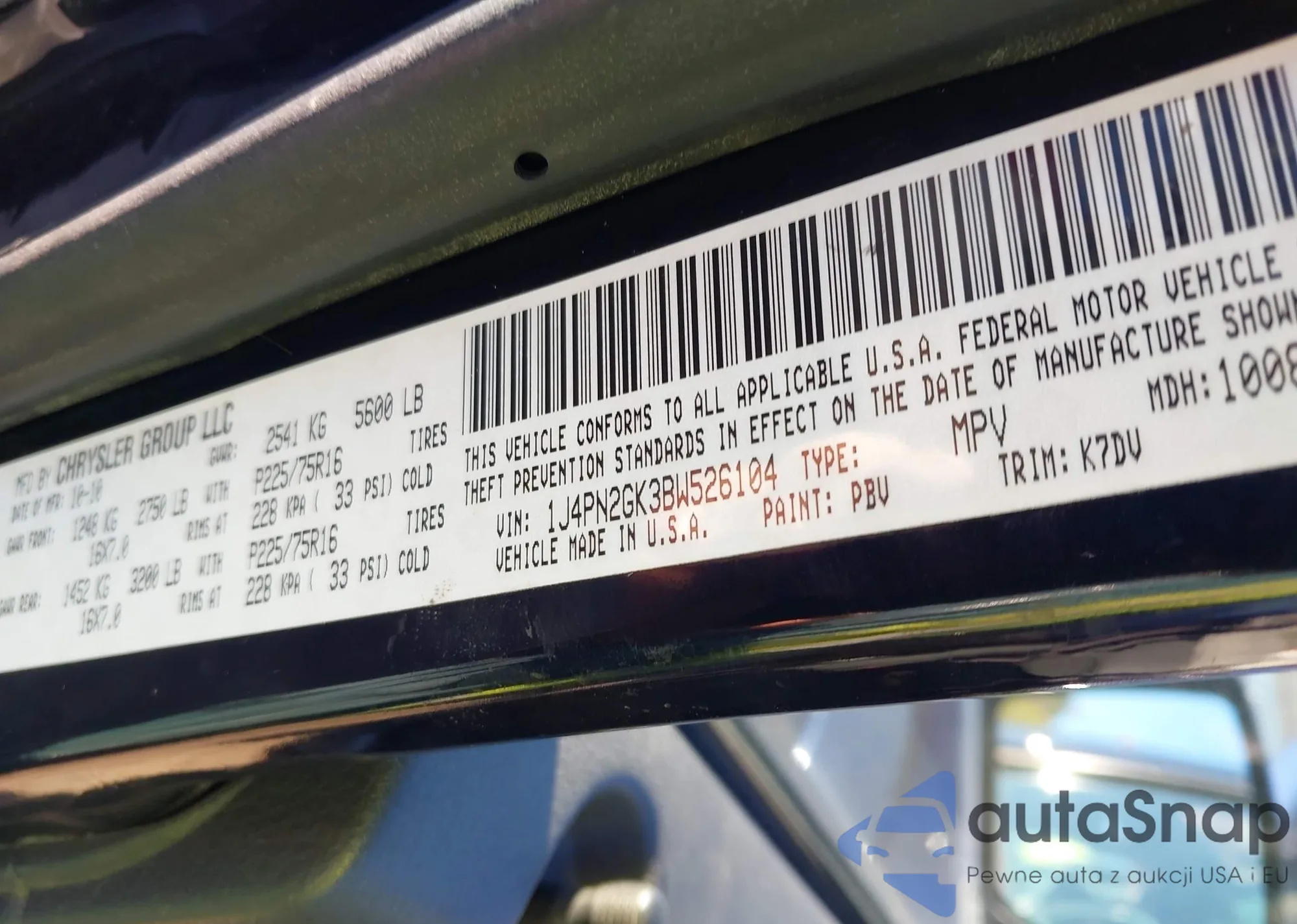 • VIN 1J4PN2GK3BW526104