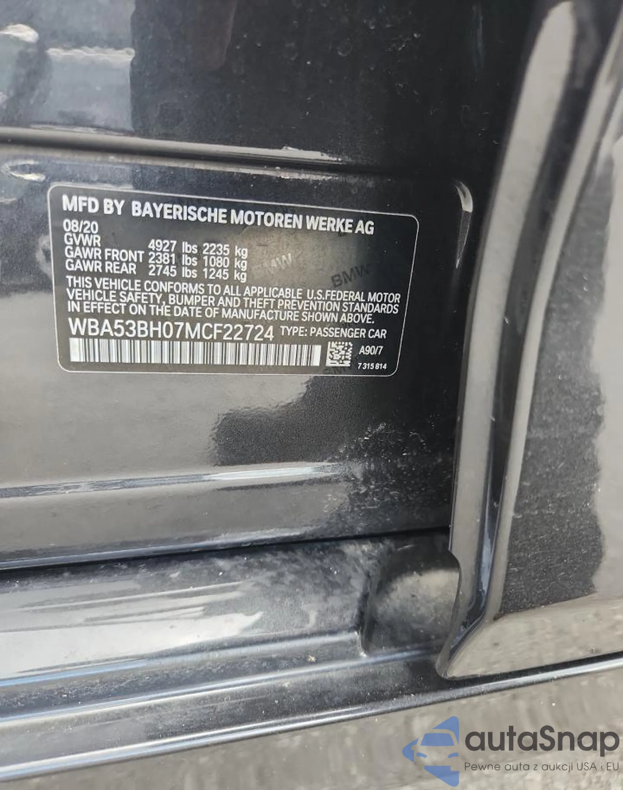 • VIN WBA53BH07MCF22724