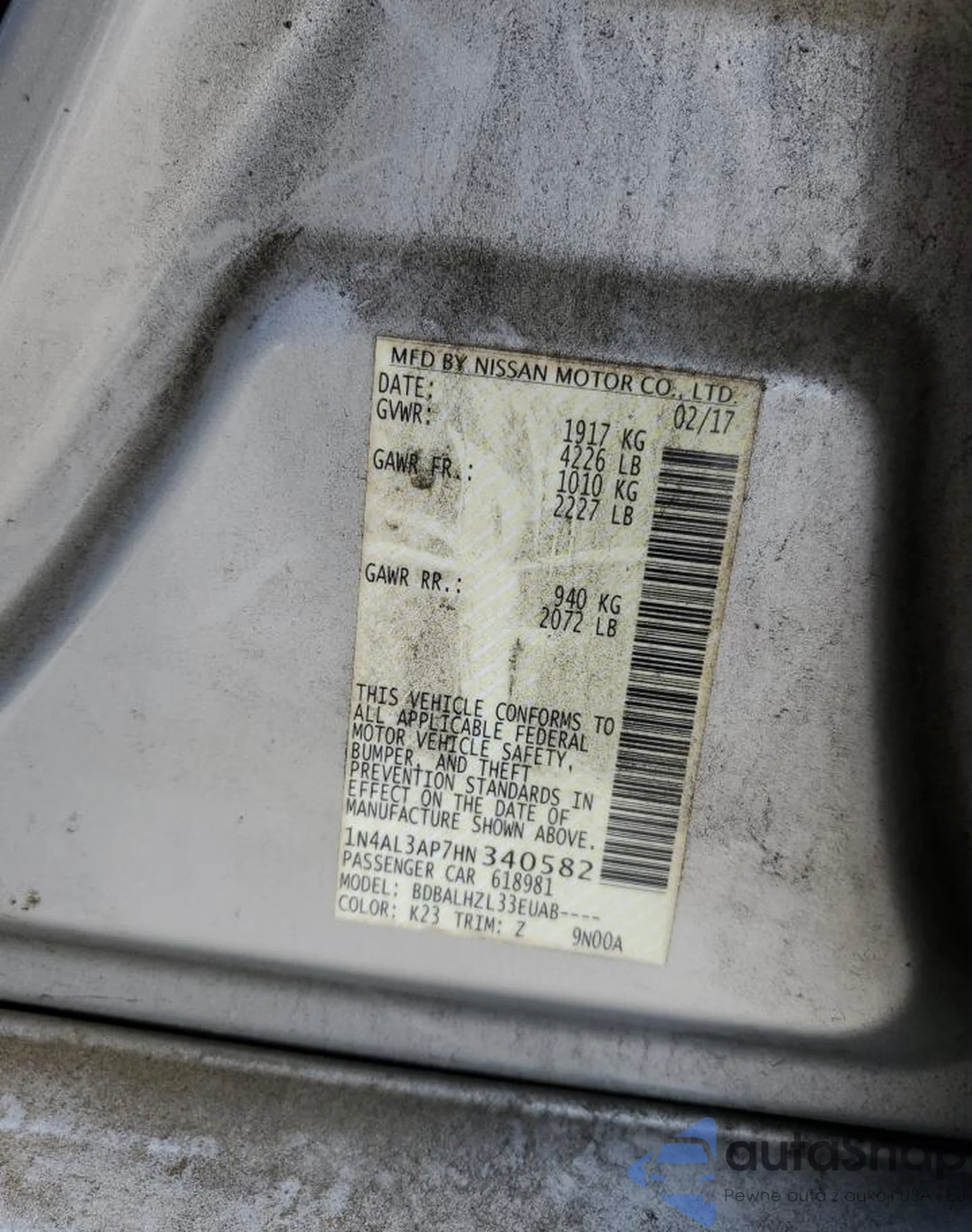 LOT: 70196755 VIN: 1N4AL3AP7HN340582
