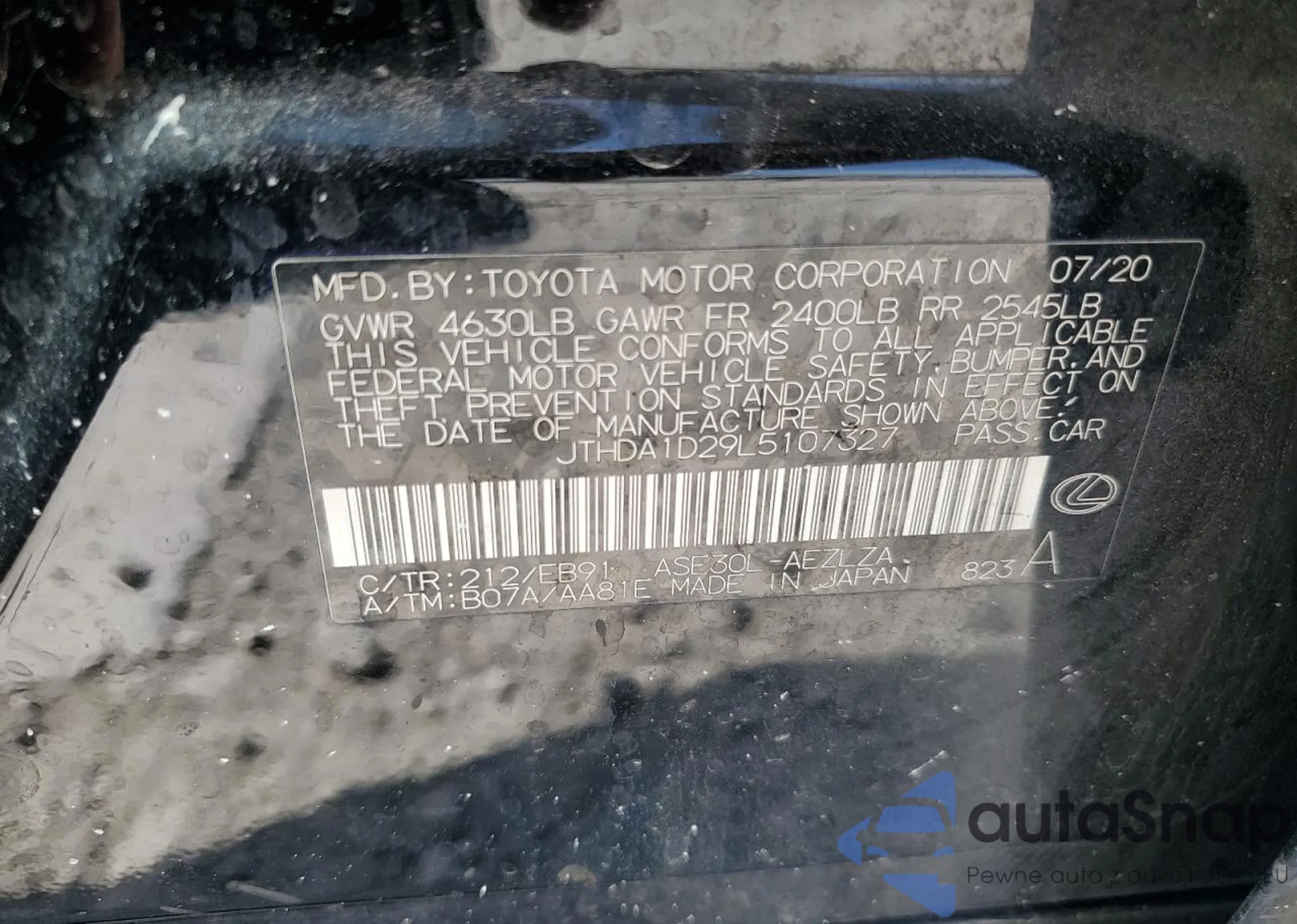 LOT: 65461885 VIN: JTHDA1D29L5107327