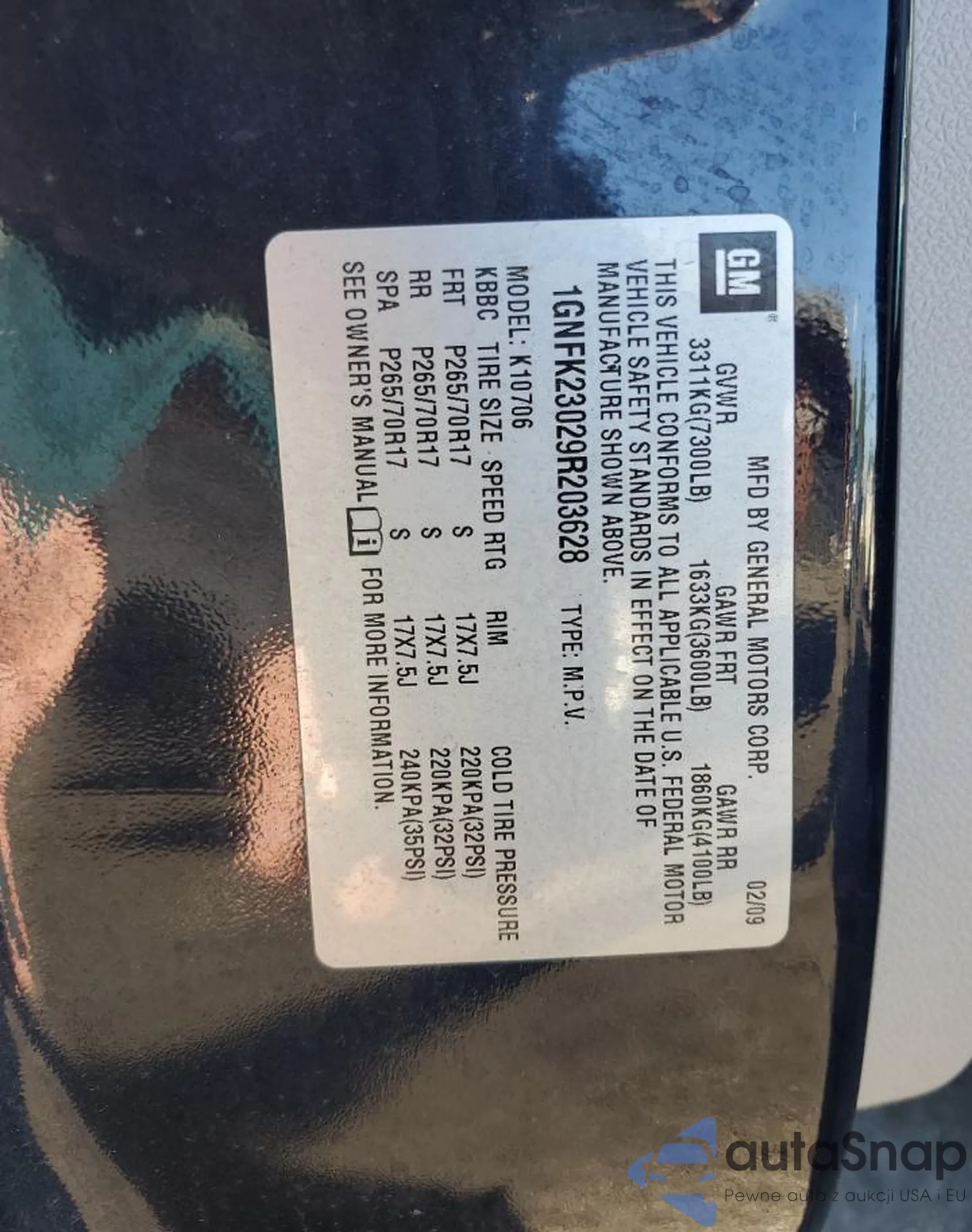 • VIN 1GNFK23029R203628