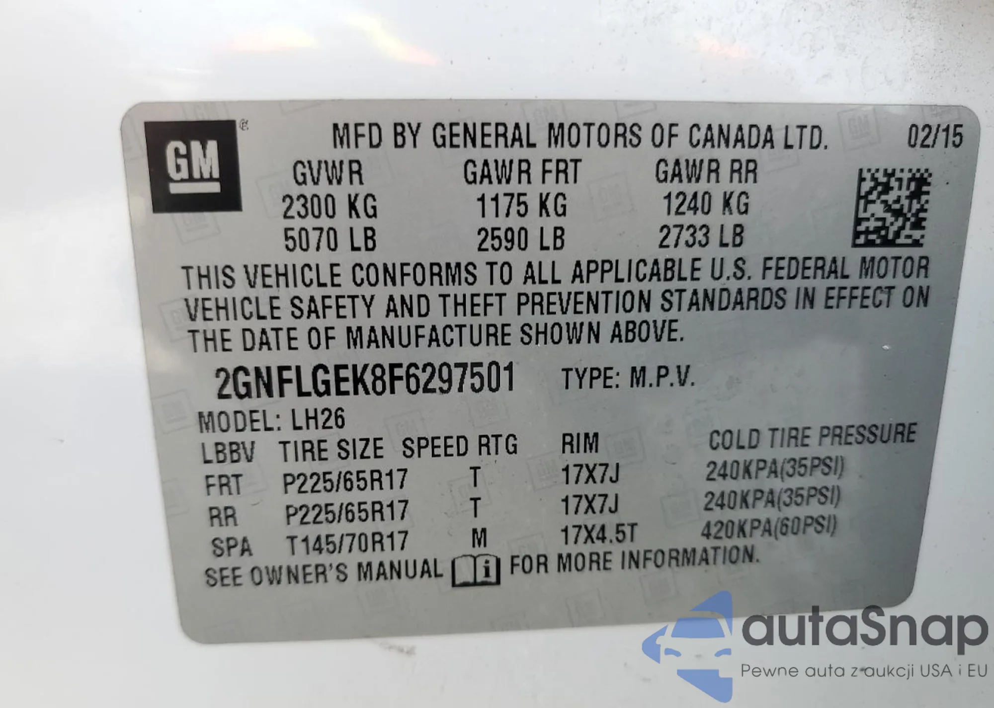 • VIN 2GNFLGEK8F6297501