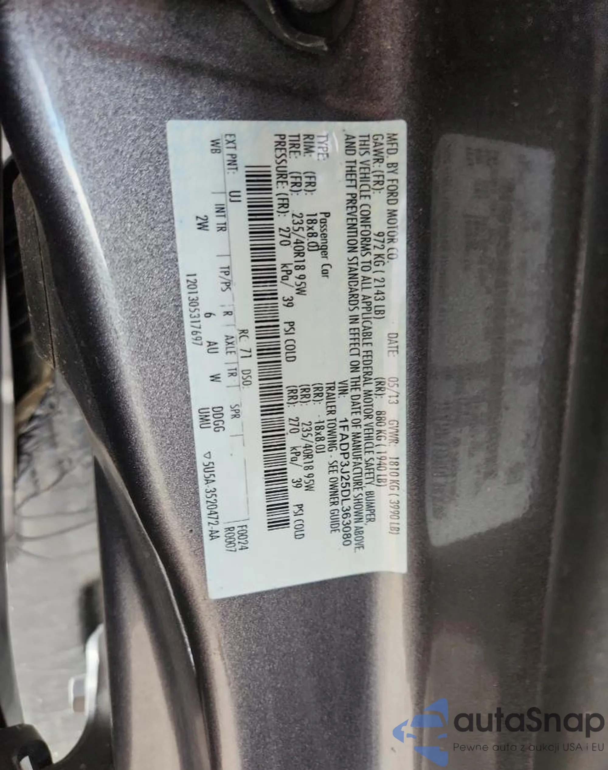 • VIN 1FADP3J25DL363080