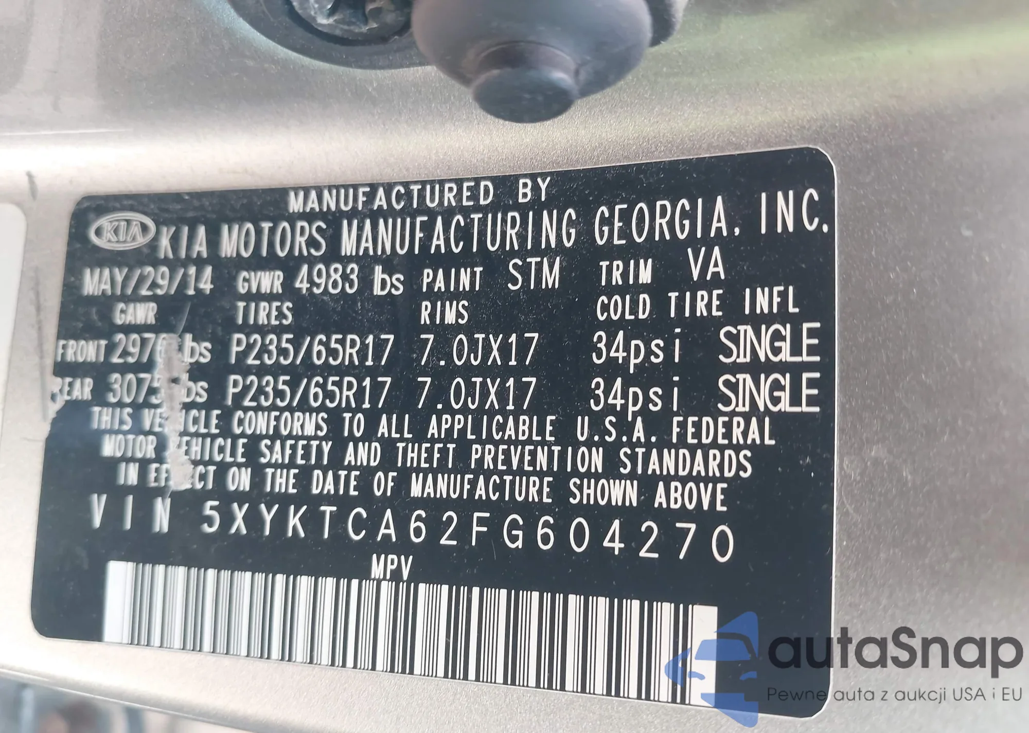LOT: 43202739 VIN: 5XYKTCA62FG604270