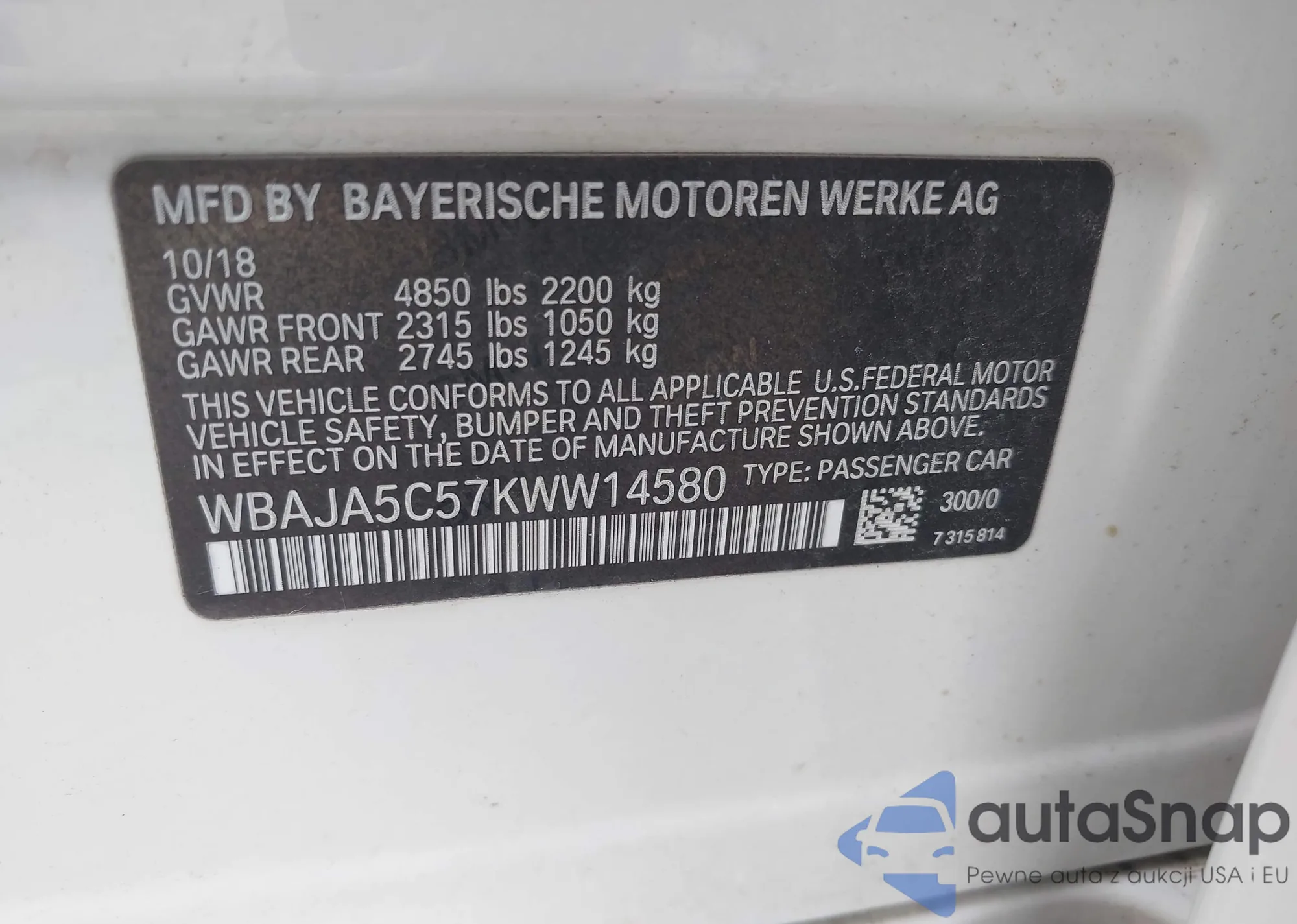 • VIN WBAJA5C57KWW14580
